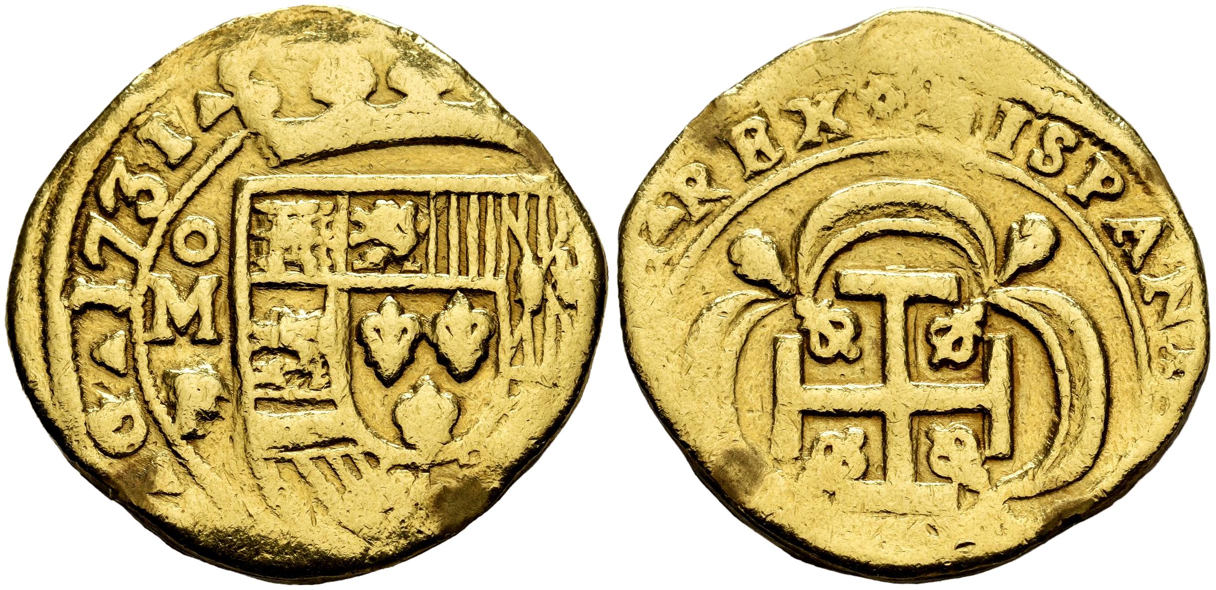 Felipe V (1700-1746). 8 escudos. 1731. México. F. (Cal-2225 var). (Tauler-417 var). (Cy-10020 var). Ag. 26,92 g. Rarísima onza de fecha tardía, con todos sus datos visibles y los cuatro dígitos de la fecha.