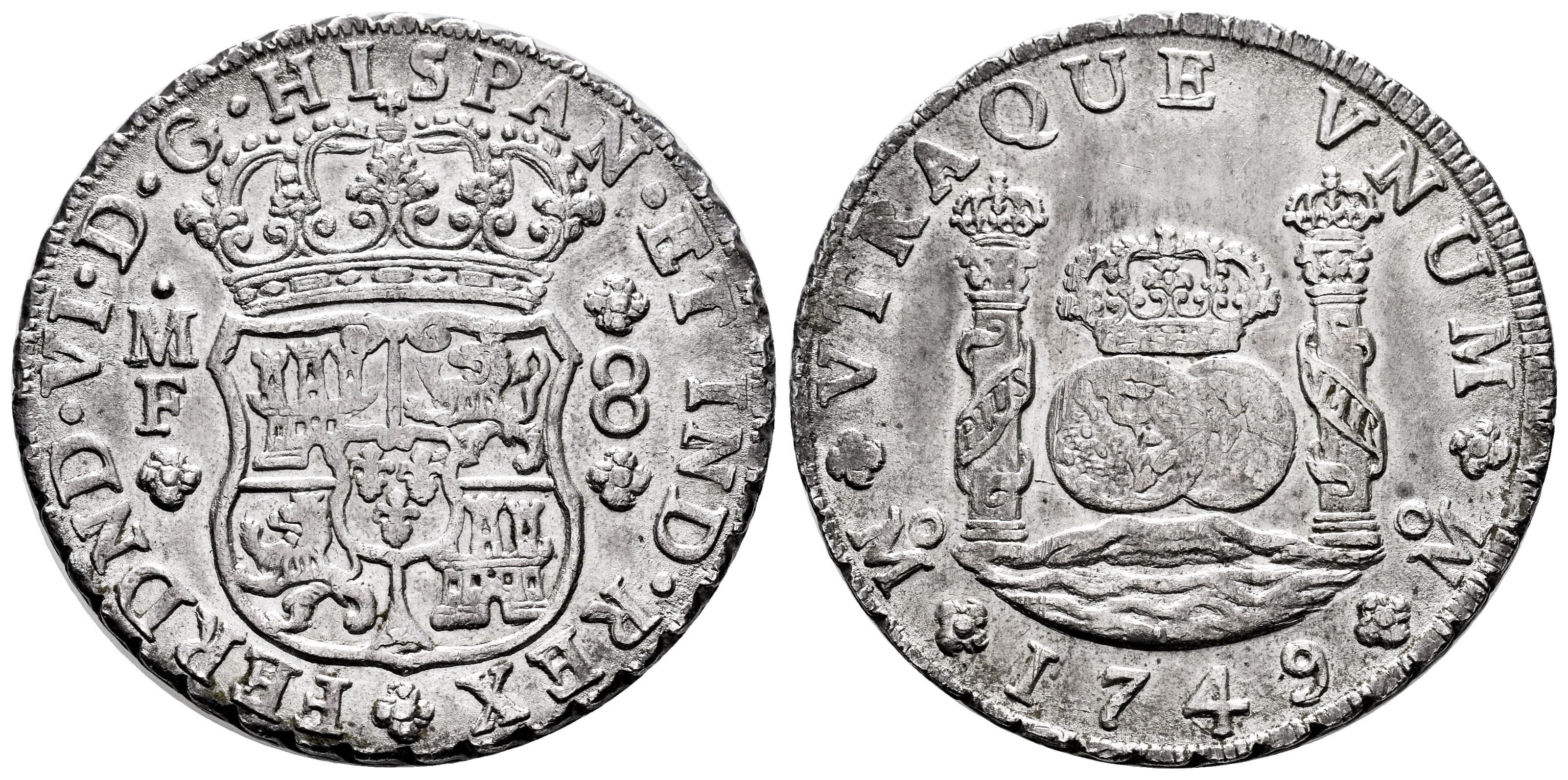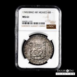 Fernando VI (1746-1759). 8 reales. 1749/8. México. MF. (Cal-472). Ag. Encapsulada por NGC como MS 61 (Top Pop), el mejor ejemplar conservado en el censo de NGC. Est...1200,00.