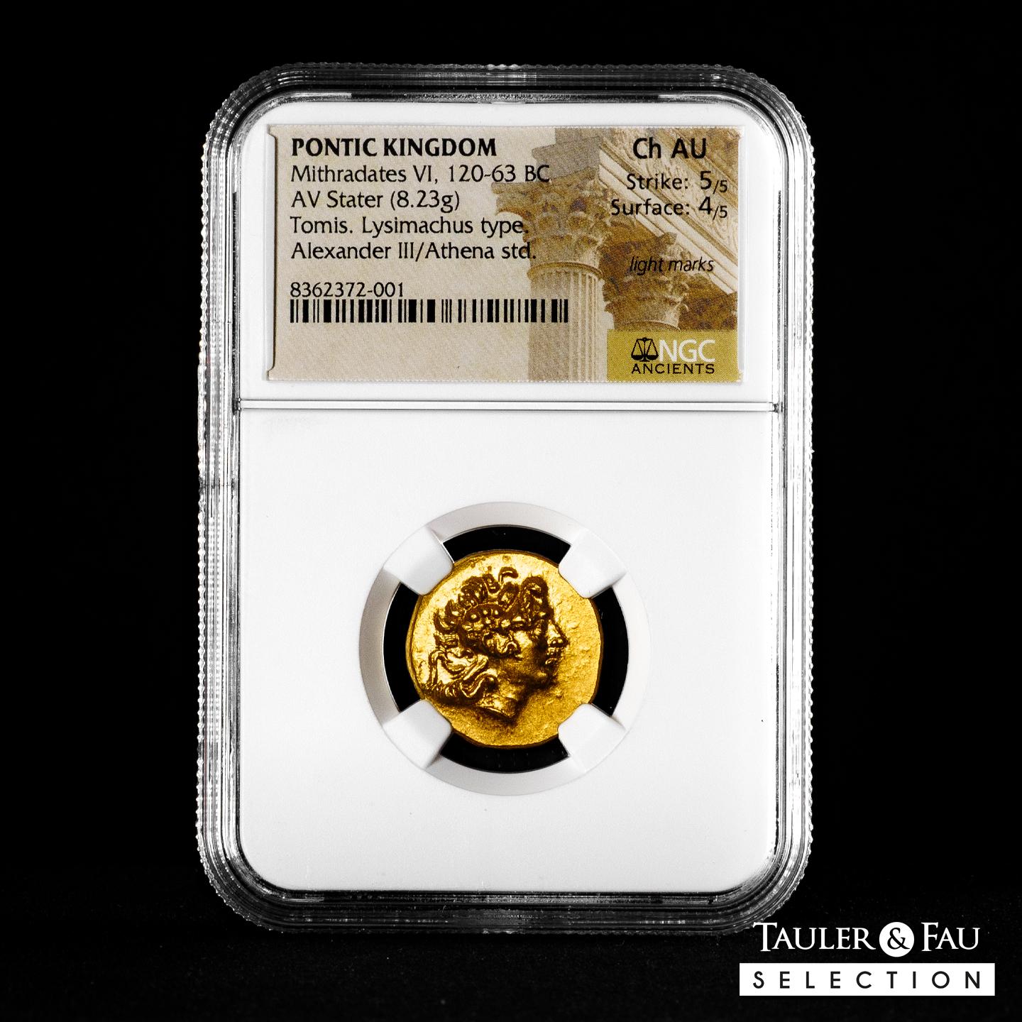 Primera guerra Mitridática. Ínfimas rayitas en el busto. Precioso color. Restos de brillo original. Muy rara.