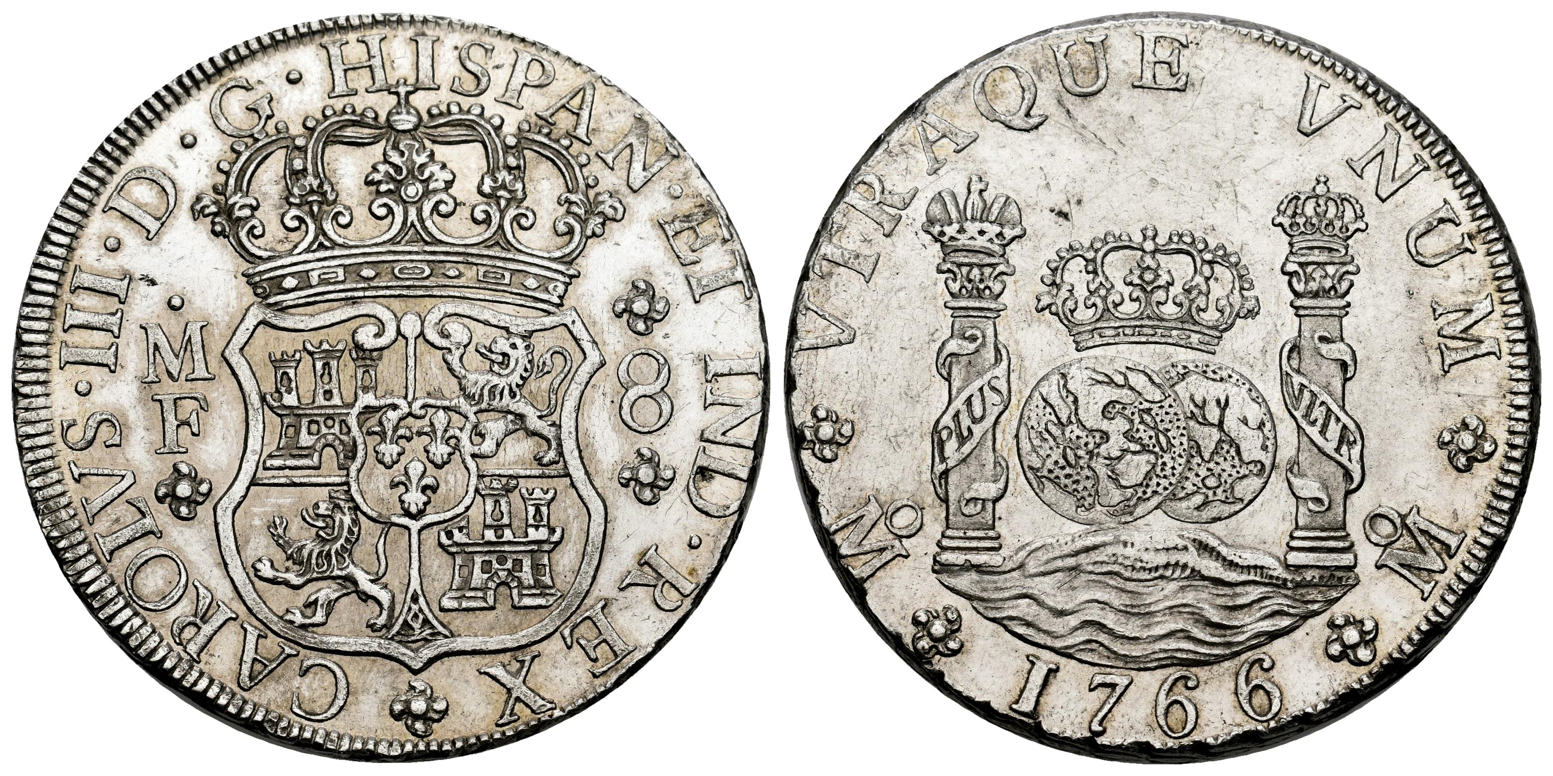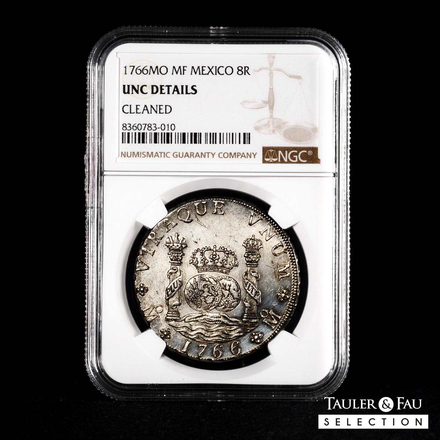 Carlos III (1759-1788). 8 reales. 1766. México. MF. (Cal-1090). Ag. Ligeramente limpiada. Encapsulada por NGC como UNC Details. Cleaned. Est...600,00.
