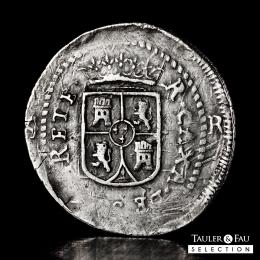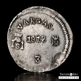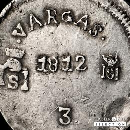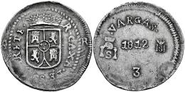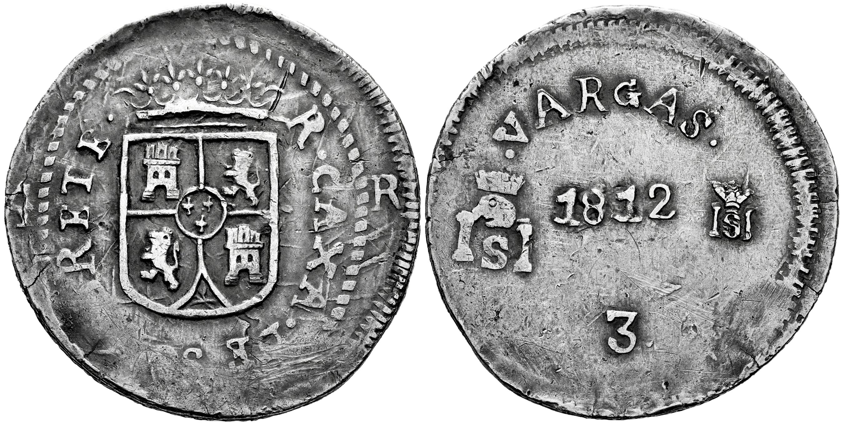 Fernando VII (1808-1833). 4 reales. 1812. Sombrerete de Vargas. (Cal-1140). (Ramírez-S4.2.1). Au. 13,82 g. Magnífico ejemplar para el tipo y sin duda uno de los mejores ejemplares conocidos. Supera con creces la calidad habitual de las emisiones de esta ceca. La acuñación es firme sobre un cospel de fabricación tosca, con todos los detalles del diseño visibles y tan solo una ligera debilidad en la leyenda del anverso. Canto colonial completo y 4-R visibles a los lados del escudo. Ligero tono. Una verdadera joya para el especialista en esta serie, ya que los ejemplares de alta conservación de este turbulento periodo de México son sumamente difíciles de encontrar y deben considerarse extremadamente raros en este excepcional estado. EBC-. Est...6000,00.