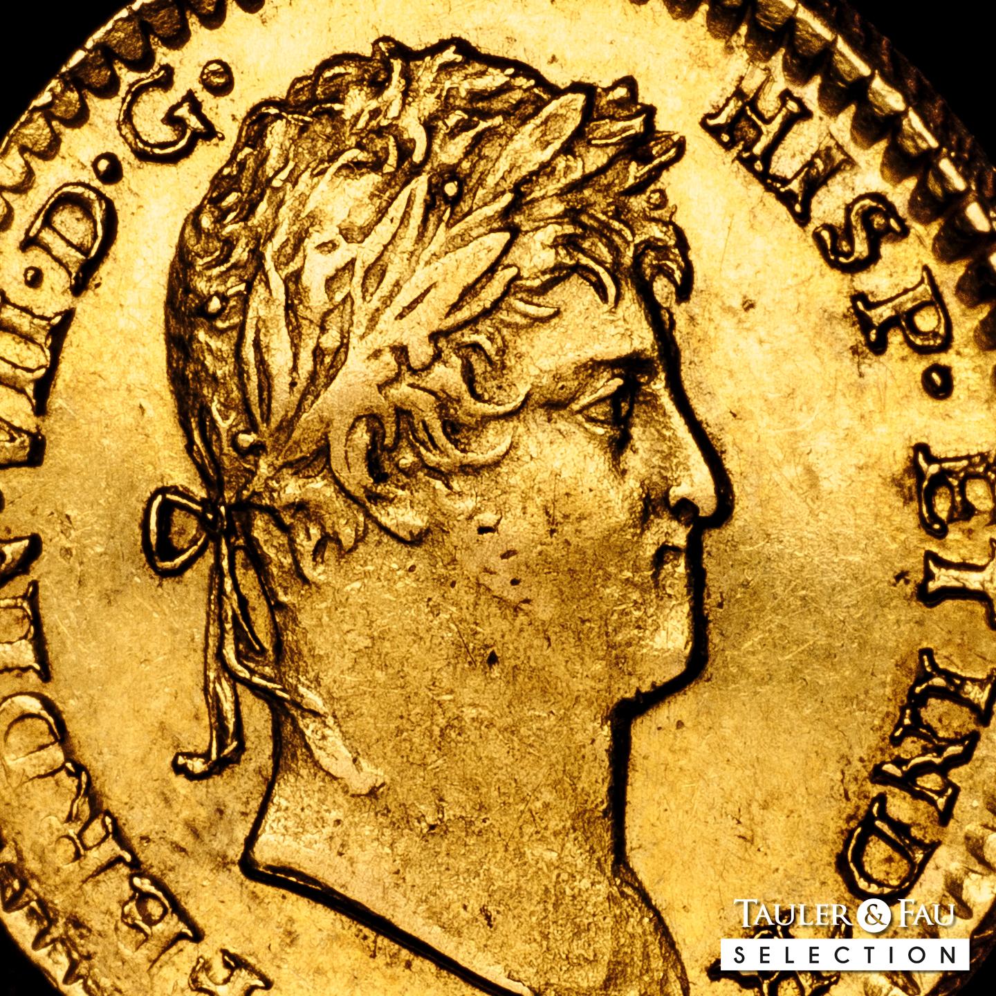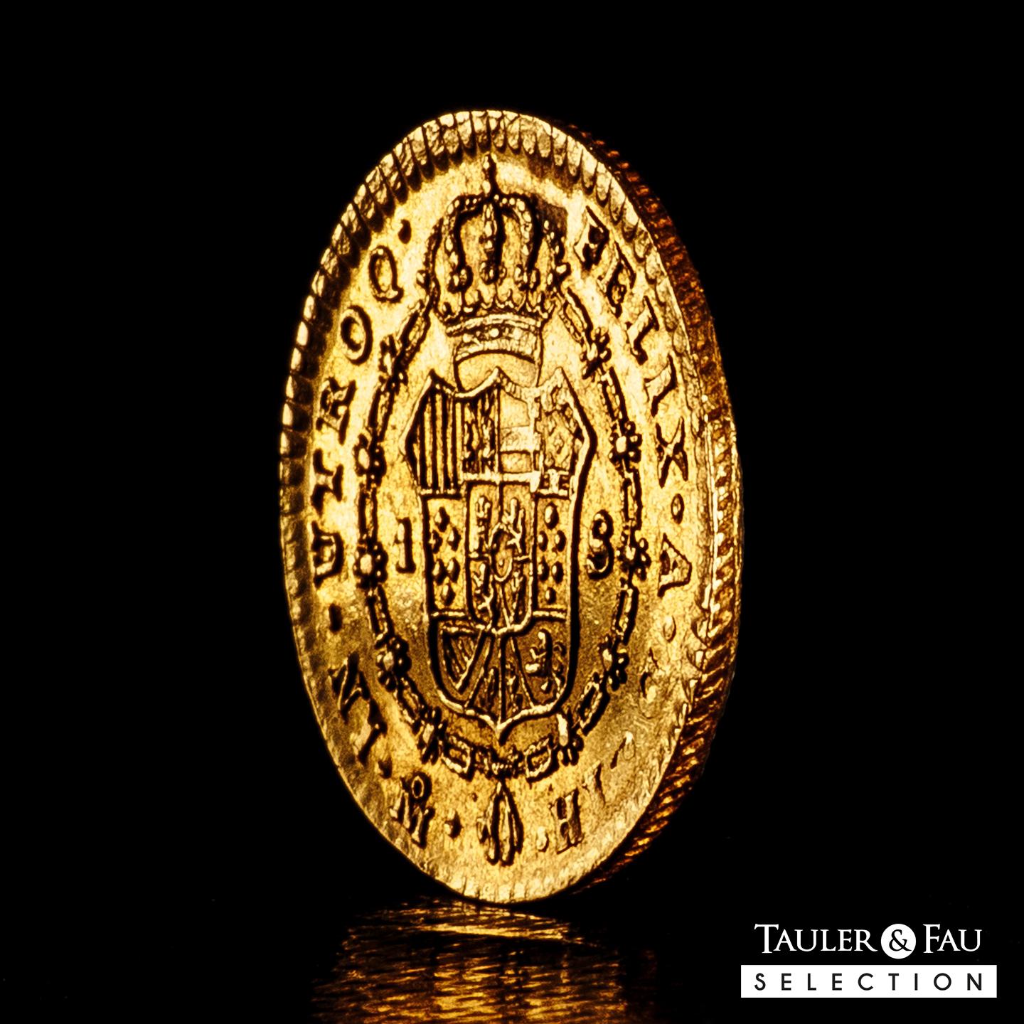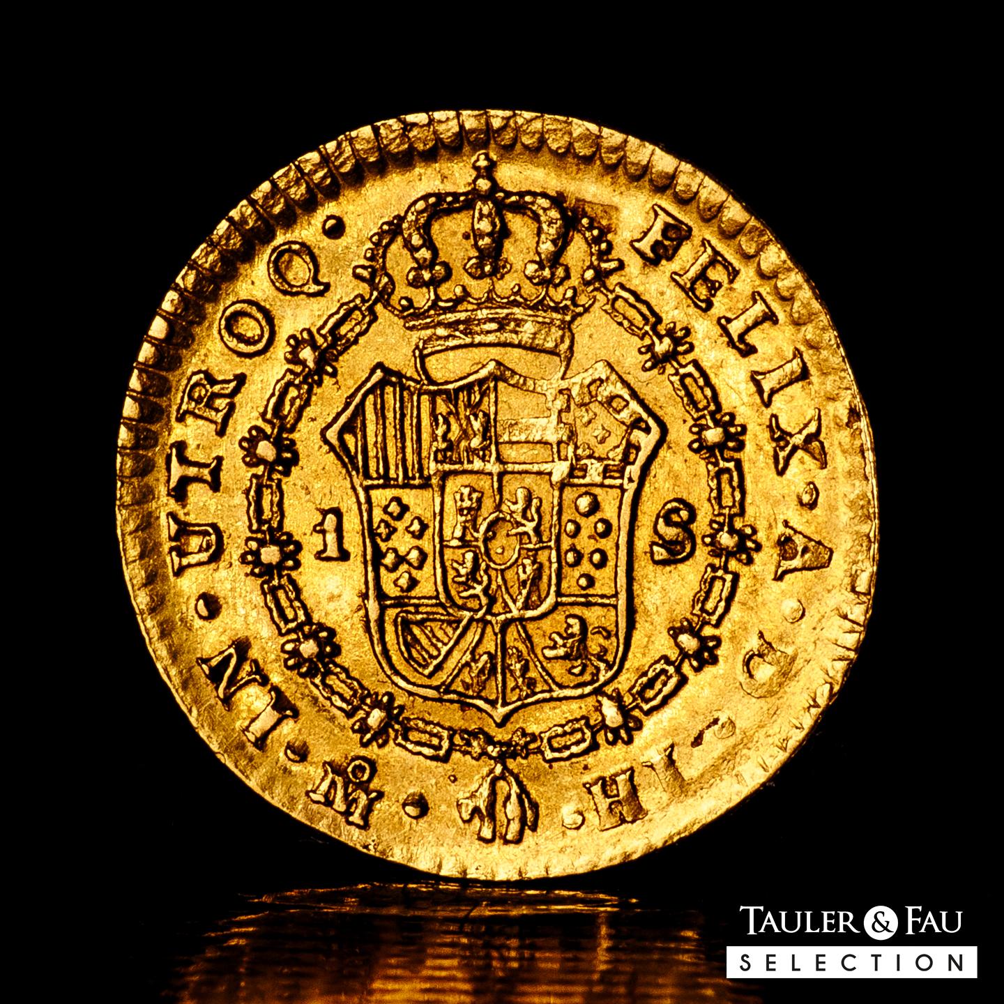 Fernando VII (1808-1833). 1 escudo. 1814. México. HJ. (Cal-1515). Au. 3,39 g. Primer año de busto laureado. Bonito color y brillo original. Escasa, más en esta conservación. Encapsulada por NGC como MS 61. Est...900,00.