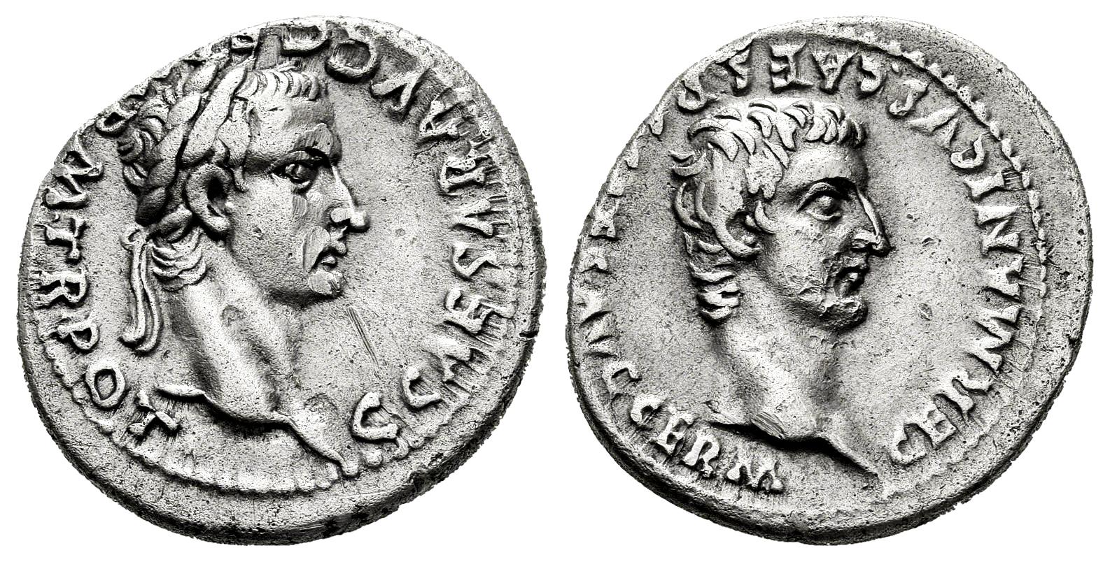 Calígula y Germánico. Denario. 37 d.C. Lugdunum. (Ric-12). (Bmc-13). (Rsc-4). Anv.: C CAESAR AVG GERM P M TR POT, Cabeza desnuda de Gaius "Calígula" a la derecha. Rev.: GERMANICVS CAES P C CAES AVG GERM. Cabeza desnuda de Germánico (padre de Calígula) a la derecha. . 3,71 g. Acuñación algo desplazada pero con las leyenda completas. Leves arañazos. Muy rara. Esta moneda fue acuñada en los inicios del reinado de Calígula como parte de una serie dedicada a honrar a su familia fallecida, en este caso, a su padre Germánico que fue un distinguido comandante militar que lideró ocho legiones en campañas contra las tribus germánicas (14-16 d.C.), vengando la derrota de Varo en Teutoburgo y recuperando dos águilas legionarias. Su éxito le valió un triunfo en Roma en el año 17 d.C., tras lo cual fue enviado a Asia para reorganizar las provincias.