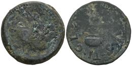 Gades-Gadir. Época de Augusto. Dupondio. 27 a.C-14 d.C. Cádiz. (Abh-1380). (Acip-3321). Anv.: Cabeza de Hércules a izquierda, detrás clava. Rev.: Símpulo a izquierda, alrededor TI. CLA(VDI)VS. Ae. 20,53 g. Rara. BC/BC+. Est...150,00.