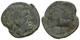 Nabrisa. Semis. 50 a.C. Lebrija (Sevilla). (Abh-1766). (MIB-180/1). (Acip-2635). Anv.: Cabeza masculina a derecha. Rev.: Caballo al trote, encima leyenda BRISSA y debajo de ésta NA. Ae. 3,18 g. Rara. BC+. Est...60,00.