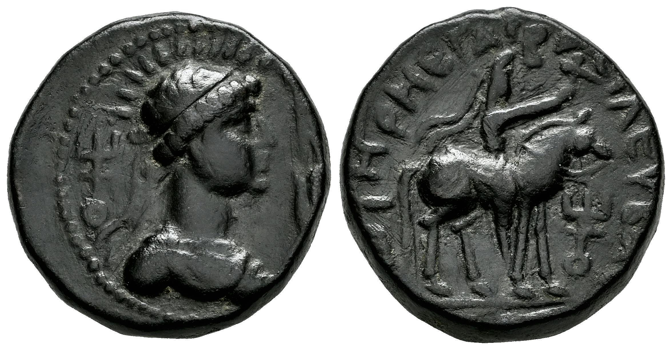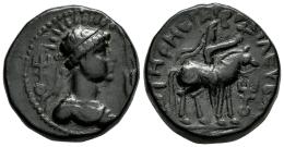 Imperio Kushan. Vima Takto (Soter Megas). Tetradracma. 80-100 d.C. Ceca incierta. (ANS Kushan-147). Anv.: Busto radiado y con diadema de Vima Takto a la derecha, sosteniendo un cetro en su mano izquierda; a la izquierda, tamgha. Rev.: CⲰΤΗΡ МЄΓΑC ΒΑCΙΛЄΥC ΒΑCΙΛЄΥⲰN. Vima Takto a caballo a la derecha, portando un hacha en su mano derecha; a la derecha, tamgha. Ve. 8,40 g. MBC-. Est...50,00.