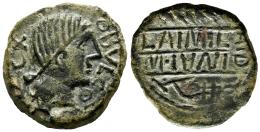 Obulco. As. 220-20 a.C. Porcuna (Jaén). (Abh-No cita). (MIB-159/26p). (Acip-2230). Anv.: Cabeza femenina a derecha, delante leyenda OBVLCO, detrás letra ibérica TA (CX). Rev.: Arriba espiga a derecha, debajo arado a la izquierda, en medio leyenda L. AIMIL/M. IVNI/ AID. Ae. 13,96 g. Rara. MBC+. Est...150,00.