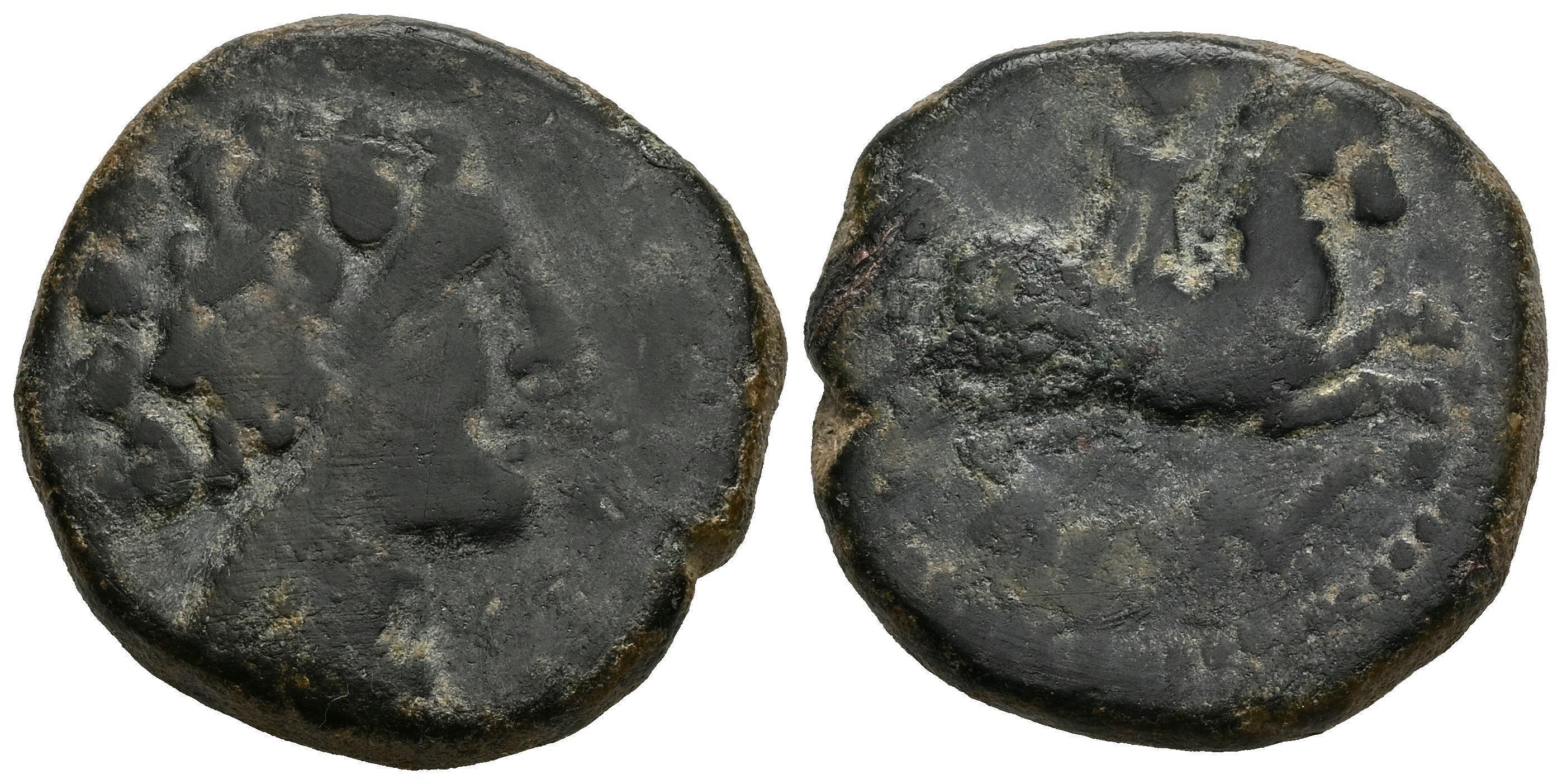 Olontigi. As. 50-20 a.C. Aznalcázar (Sevilla). (Abh-1874). (MIB-24/01). (Acip-853). Anv.: Cabeza masculina a derecha. Rev.: Jinete con lanza, debajo OLVNT. Ae. 11,82 g. Escasa. MBC-. Est...90,00.