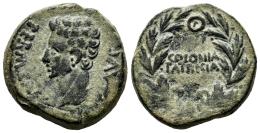 Colonia Patricia. Época de Augusto. As. 27 a.C-14 d.C. Córdoba. (Abh-1989). (Acip-3357). Anv.: Cabeza de Augusto a izquierda, alrededor PERM. CAES. AVG. Rev.: Láurea, en el centro COLONIA. PATRICIA. Ae. 13,24 g. MBC+. Est...70,00.