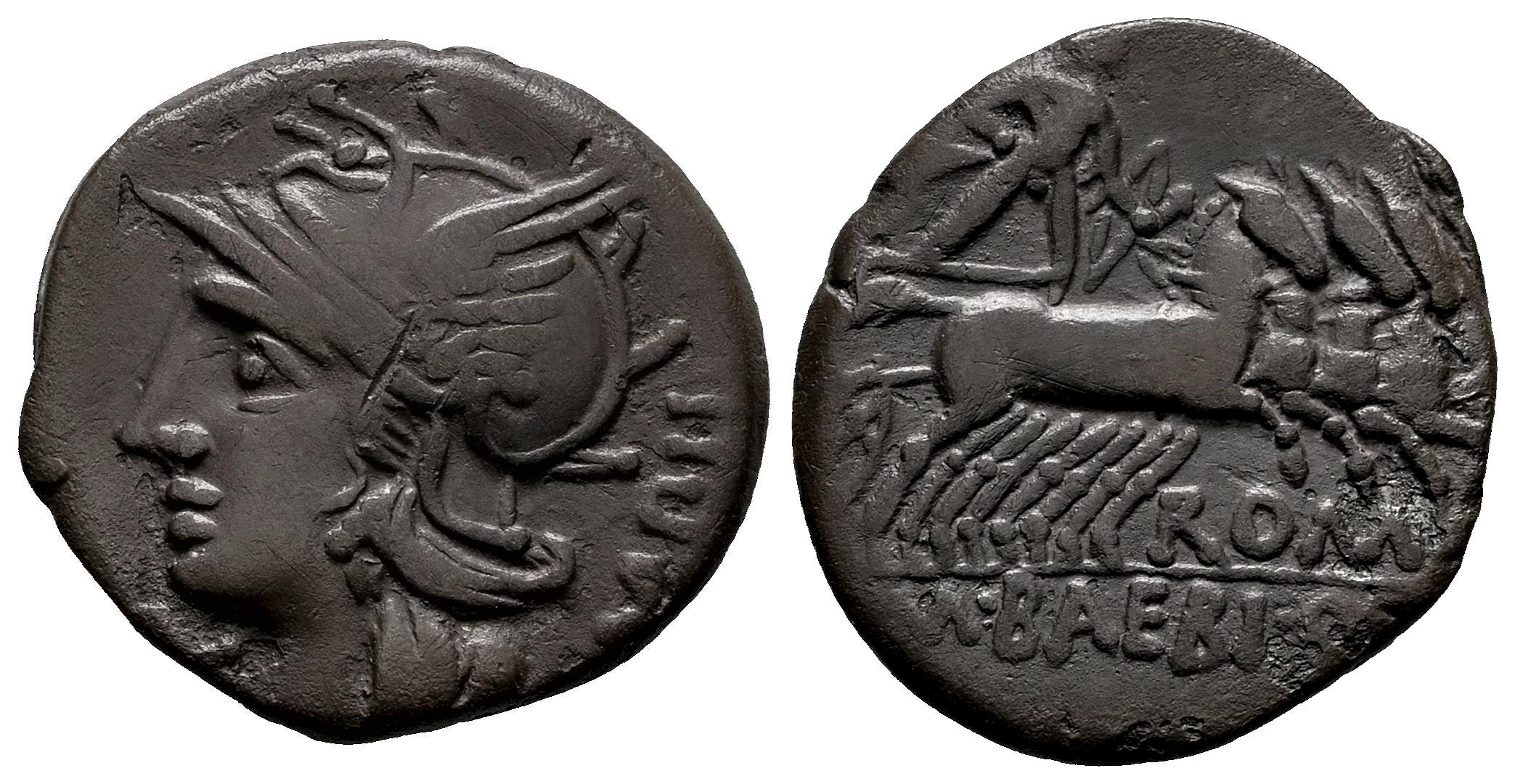 Baebia. Marcius Baebius Q.f. Tampilus. Denario. 137 a.C. Roma. (Ffc-199). (Craw-236/1c). Anv.: Cabeza de Roma a la izquierda, con collarín en cuello y una hilera de perlas, delante: X, detrás: TAMPIL. Rev.: Apolo en cuadriga a derecha con palma, arco y flechas,debajo: ROMA., en el exergo: M. BAEBI. Q.F. Ag. 3,19 g. Pátina original. MBC. Est...100,00.