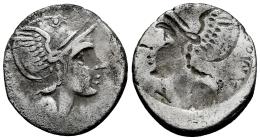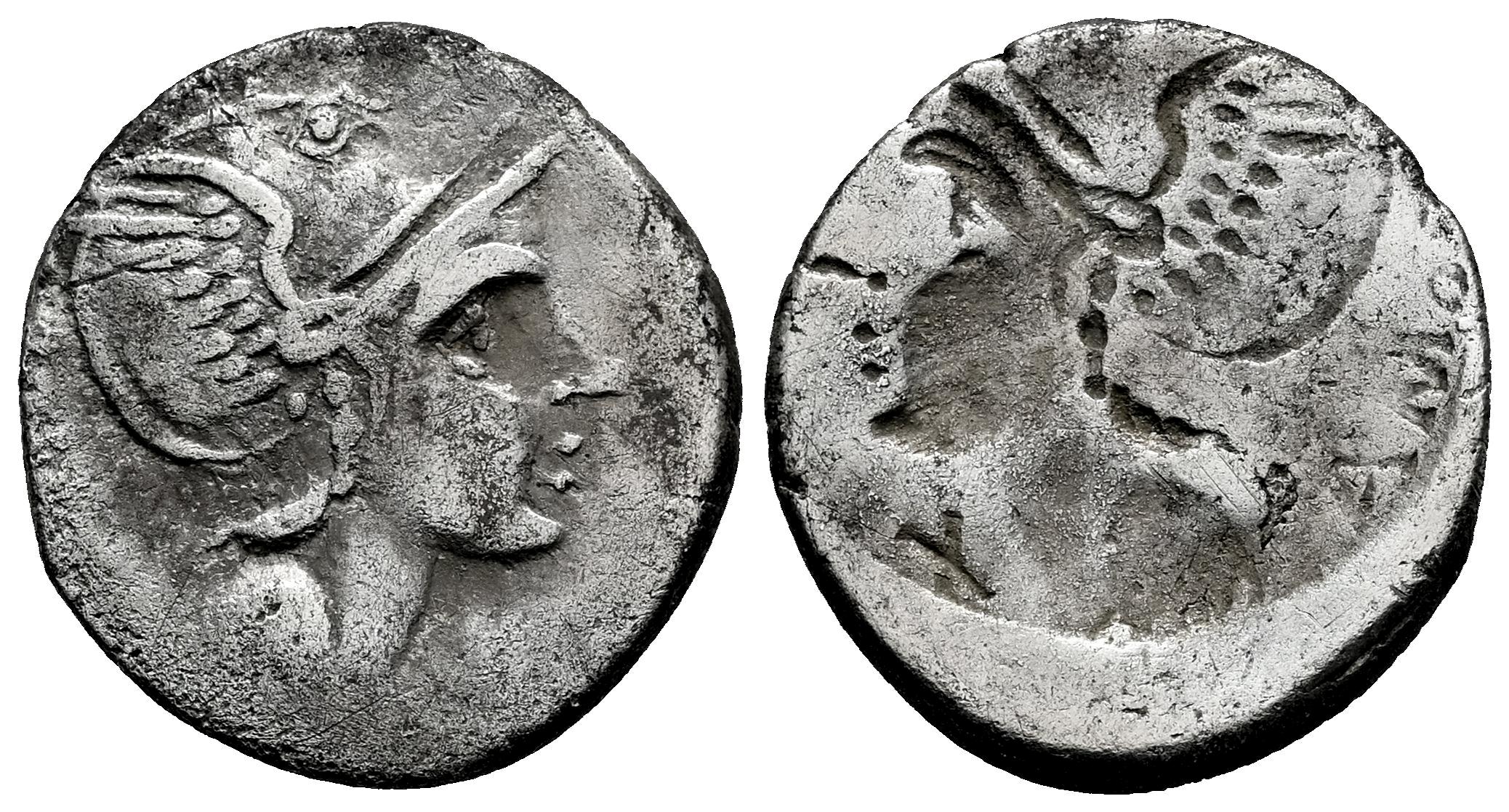 Flaminia. Lucius Flaminius Cilo. Denario. 109-108 a.C. Norte de Italia. (Ffc-708). (Craw-302/1). (Cal-579). Anv.: Cabeza de Roma a derecha, delante: (X),detrás: (ROMA). Rev.: Incuso de anverso. Ag. 3,56 g. Escasa. BC+/MBC-. Est...200,00.