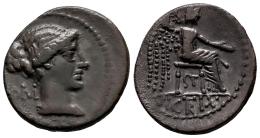 Porcia. M. Porcius Cato. Denario. 89 a.C. Roma. (Ffc-1059). (Craw-343/1c). Anv.: Cabeza de la Libertad a derecha, detrás: ROM., debajo: M. CATO, (AT entrelazadas). Rev.: Victoria alada con pátera y palma, sentada a derecha, debajo: ST., en el exergo: VICTRIX., (TR entrelazadas). Ag. 3,82 g. Pátina original. MBC. Est...150,00.