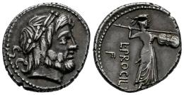 Procilia. L. Procilius f. Denario. 80 a.C. Roma. (Ffc-1083). (Craw-379/1). (Cal-1226). Anv.: Cabeza laureada de Júpiter a derecha, detrás: S.C. Rev.: Juno Sospita a derecha, con escudo y lanza, delante: serpiente,detrás: L. PROCILI. F. Ag. 3,92 g. Bonita pátina. EBC-. Est...100,00.