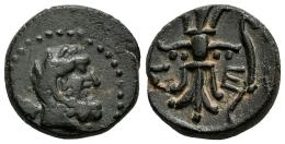 Pisidia. Selge. AE 13. Siglo II-I a.C. (SNG BnF-1979). (SNG von Aulock-5288). (Sng Cop-263). Anv.: Cabeza laureada de Hércules a la derecha, maza sobre el hombro. Rev.: Rayo; arco a la derecha, Σ-Ε-(Λ) a través de los campos. Ae. 2,74 g. MBC+/EBC. Est...60,00.