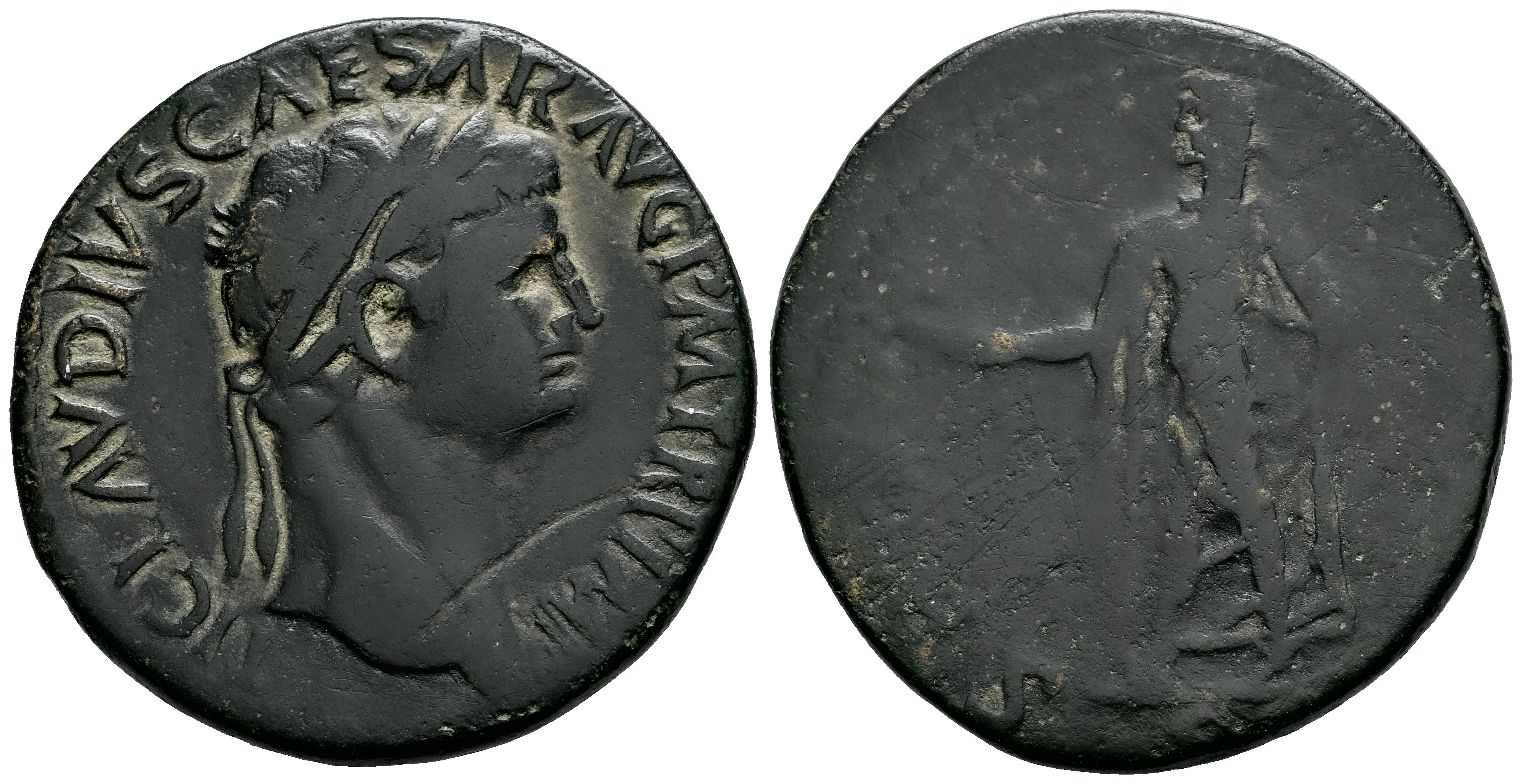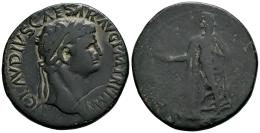 Claudio I. Sestercio. 41-50 d.C. Roma. Imitación Hispana. (Ric-I 99). (Bmcre-124). Anv.: TI CLAVDIVS CESAR AVG P M TR P IMP. Cabeza laureada a la derecha. Rev.: SP(ES AVGVSTA). Spes avanzando hacia la izquierda, sosteniendo una flor y levantando el dobladillo de su vestido; S C en el exergo. Ae. 17,05 g. Ex Áureo & Calicó 390 (31-05-2022), lote 2056. MBC/MBC-. Est...120,00.