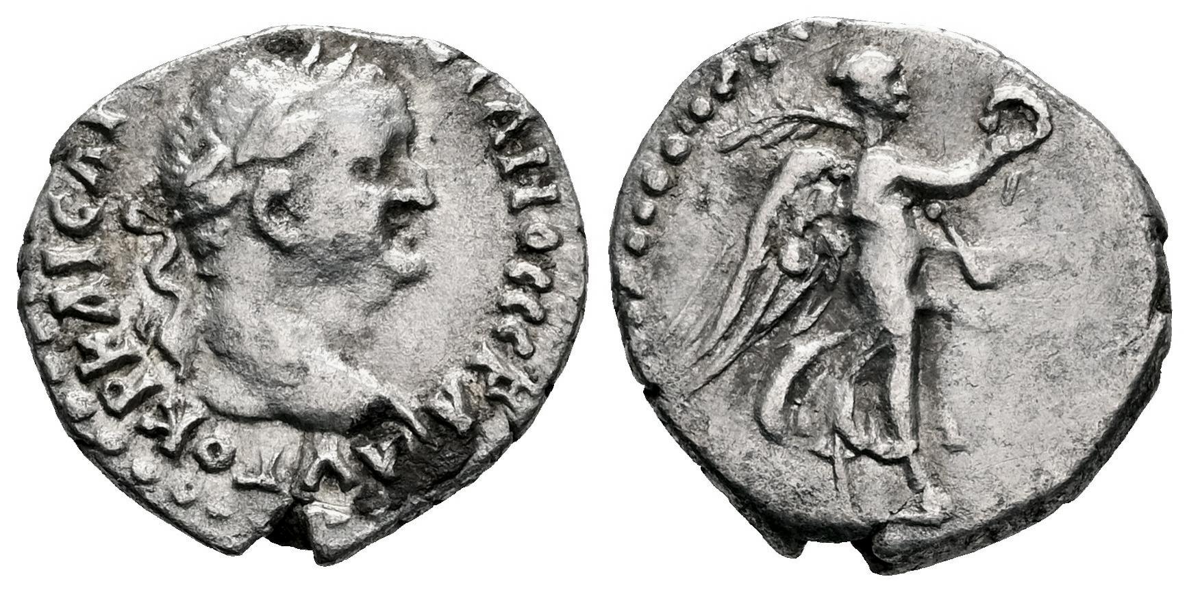 Vespasiano. Hemidracma. 69-79 d.C. Caesarea-Eusebia. Cappadocia. (RPC-II 1659). (Sydenham-Caesarea 94). Anv.: AVTOKP KAICAP OVЄCΠACIANOC CЄBA. Cabeza laureada a la derecha. Rev.: Victoria avanzando a la derecha, sosteniendo corona y palma. Ag. 1,74 g. MBC+/MBC. Est...100,00.