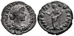Lucilia. Denario. 164-180 d.C. Roma. (Ric-III 771 (M. Aurelio)). (Bmc-313 (M. Aurelio)). (Rsc-38). Anv.: LVCILLAE AVG ANTONINI AVG F. Busto drapeado a derecha. Rev.: IVNONI LVCINAE. Juno, velada y envuelta en un manto, de pie a izquierda, levantando la mano derecha y sosteniendo a un niño en el brazo izquierdo. Ag. 3,25 g. MBC. Est...60,00.