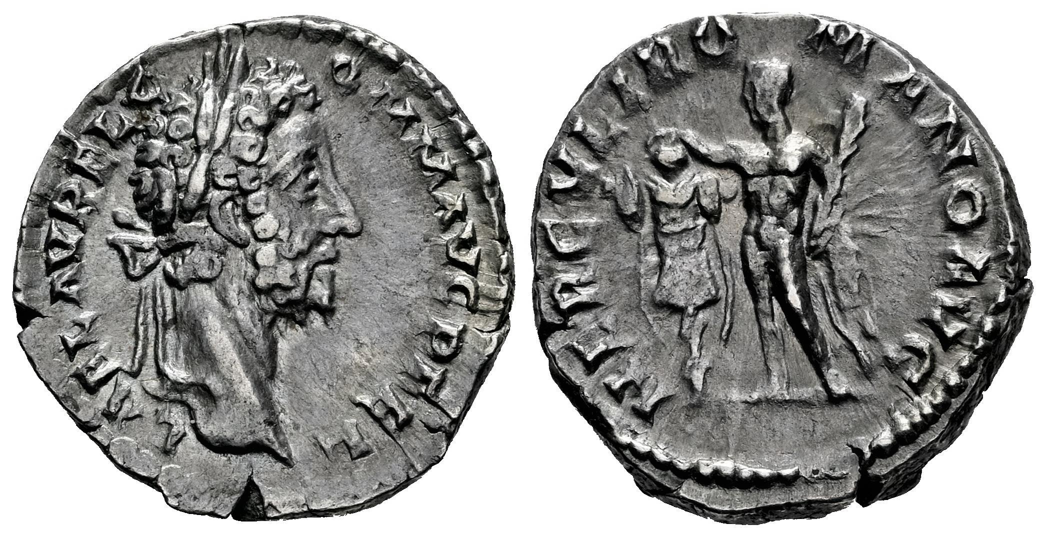 Cómodo. Denario. 191-192 d.C. Roma. (Ric-III 254a). (Bmcre-364a). (Rsc-202). Anv.: L AEL AVREL COMM AVG P FEL. Cabeza laureada a la derecha. Rev.: HERCVLI ROMANO AVG. Hércules en pie a la izquierda, sosteniendo un garrote y una piel de león, coronando un trofeo. Ag. 3,37 g. MBC+. Est...150,00.