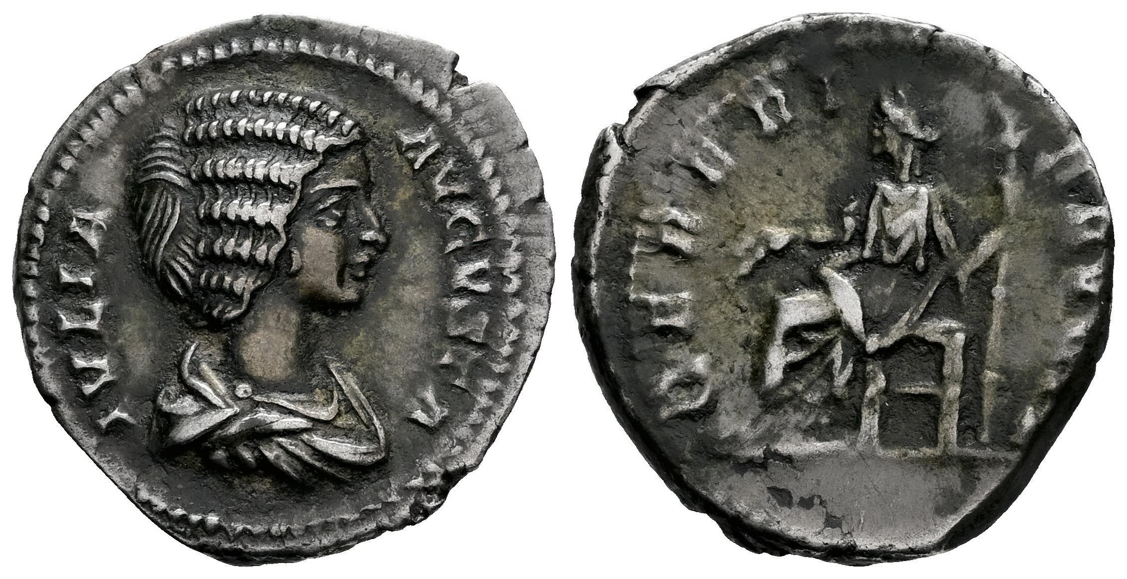 Julia Domna. Denario. 196-211 d.C. Roma. (Ric-IV 546). (Bmcre-10). (Rsc-14). Anv.: IVLIA AVGVSTA. Busto drapeado a la derecha. Rev.: CERERI FRVGIF. Ceres sedente a la izquierda, sosteniendo espigas y una antorcha. Ag. 3,38 g. MBC+/MBC-. Est...100,00.