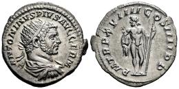 Caracalla. Antoniniano. 216 d.C. Roma. (Ric-IV 275b). (Bmcre-152). (Rsc-338). Anv.: ANTONINVS PIVS AVG GERM. Busto radiado y drapeado a la derecha. Rev.: P M TR P XVIIII COS IIII P P. Júpiter en pie de frente, mirando hacia la izquierda, sosteniendo un rayo y un cetro. Ag. 5,46 g. Bella. Ex Tauler & Fau 61 (07/07/2020), lote 1304. EBC/MBC+. Est...150,00.