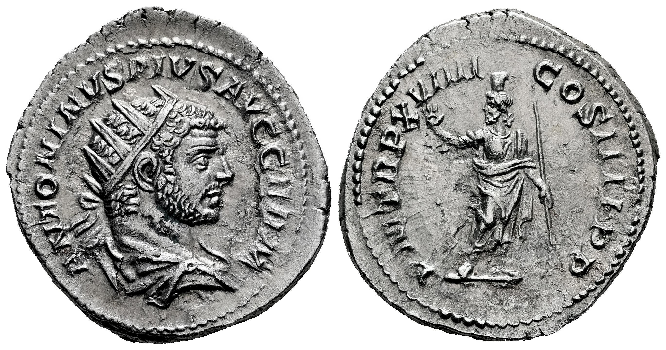 Caracalla. Antoniniano. 216 d.C. Roma. (Ric-IV 280d). (Bmcre-165). (Rsc-349b). Anv.: ANTONINVS PIVS AVG GERM. Busto radiado y drapeado a la derecha. Rev.: P M TR P XVIIII COS IIII P P. Serapis en pie a la izquierda, levantando la mano y sosteniendo un cetro. Ag. 3,95 g. MBC+. Est...160,00.
