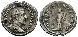 Maximino I. Denario. 235-236 d.C. Roma. (Ric-IV 13). Anv.: IMP MAXIMINVS PIVS AVG. Busto laureado y drapeado hacia la derecha. Rev.: PROVIDENTIA AVG. Providentia en pie a izquierda con barra y cuerno de la abundancia, a sus pies globo. Ag. 2,23 g. MBC+/MBC-. Est...100,00.