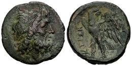 Brutium. Brettii. AE 21. 211-208 a.C. (HN Italy-1994). (Sng Ans-134). Anv.: Cabeza laureada de Zeus a la derecha. Rev.: Águila en pie a la izquierda, cabeza vuelta a la derecha, BPET a la derecha, TIΩN a la izquierda, arado en el campo inferior izquierdo. Ae. 6,46 g. Ex Tauler & Fau 109 (10/05/2022), lote 4010. MBC/MBC+. Est...60,00.