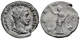 Volusiano. Antoniniano. 251-253 d.C. Roma. (Ric-IV 179). (Rsc-70). Anv.: IMP CAE C VIB VOLVSIANO AVG. Busto radiado, drapeado y con coraza a derecha. Rev.: PAX AVGG. Pax en pie de frente mirando a izquierda, portando rama y cetro transversal. Ag. 3,64 g. Cuño del reverso gastado. MBC+/MBC-. Est...60,00.