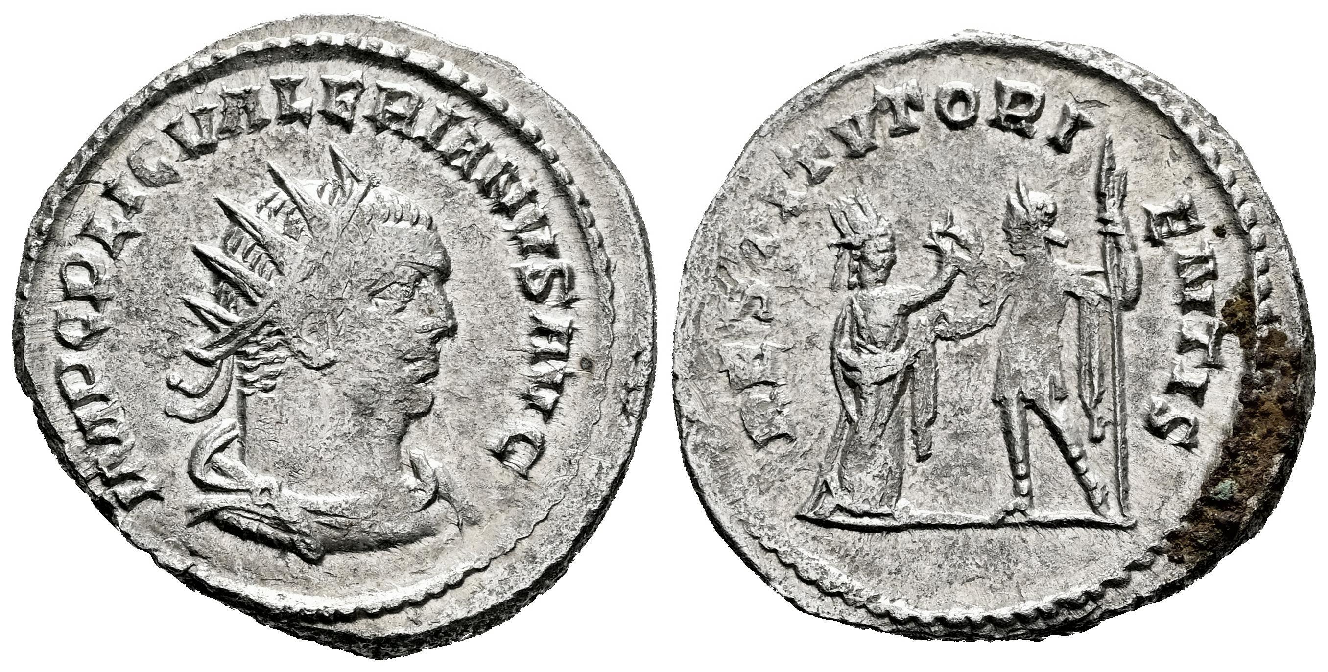 Valeriano I. Antoniniano. 255-256 d.C. Samosata. (Ric-V 1 287). (MIR-1685e). (Rsc-189 corr.). Anv.: IMP C P LIC VALERIANVS AVG. Busto radiado, drapeado y con coraza a la derecha. Rev.: RESTITVT ORIENTIS. Figura femenina con corona mural (Oriente) en pie a la derecha, presentando una corona al Emperador en pie a la izquierda, sosteniendo una lanza. Ag. 3,92 g. Pequeña oxidación en reverso. Restos de brillo original. EBC. Est...70,00.