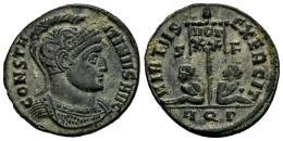 Constantino I. Follis. 307/10-337 d.C. Aquileia. (Ric-48). Anv.: CONSTANTINVS AVG. Busto con coraza a la derecha, con casco con cresta. Rev.: VIRTVS EXERCIT. Dos cautivos sentados en la base de vexillum con la inscripción VOT / XX, S-F a través de los campos; AQP en el exergo. Ae. 2,92 g. Ex Tauler & fau 130 (04/07/2023), lote 2296. EBC-. Est...50,00.