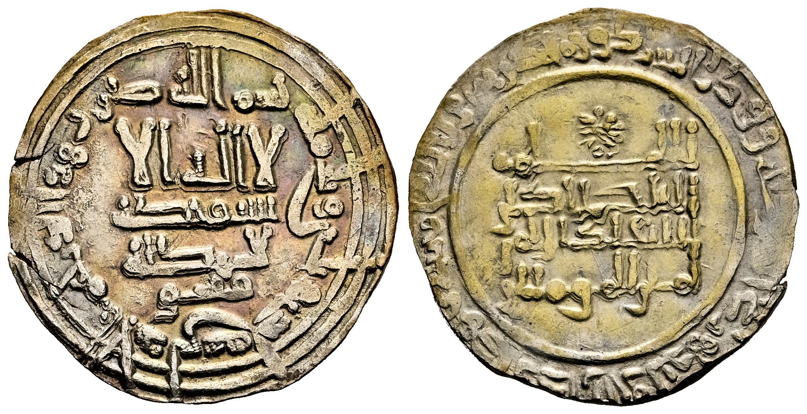 Califato de Córdoba. Abd Al-Rahman III. Dirham. 331 H. Al-Andalus. (Vives-397). Ag. 3,12 g. Citando Qasim en IA. Bonito tono dorado e iridiscente. Ex Tauler & Fau 68 (03/11/2020), lote 1238. MBC+. Est...50,00.