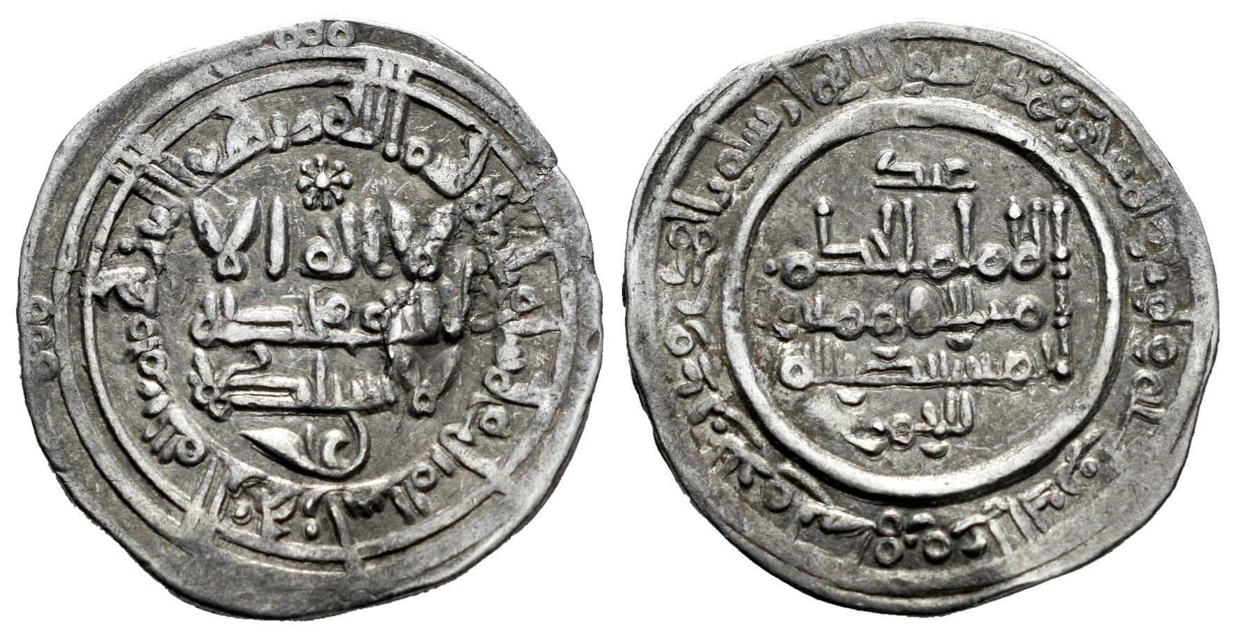 Califato de Córdoba. Al-Hakam II. Dirham. 353 H. Madinat al-Zahra. (Vives-451). Ag. 2,87 g. Citando a `Abd / Al-Rahman en IIA. Defecto de metal en anverso. MBC+. Est...45,00.