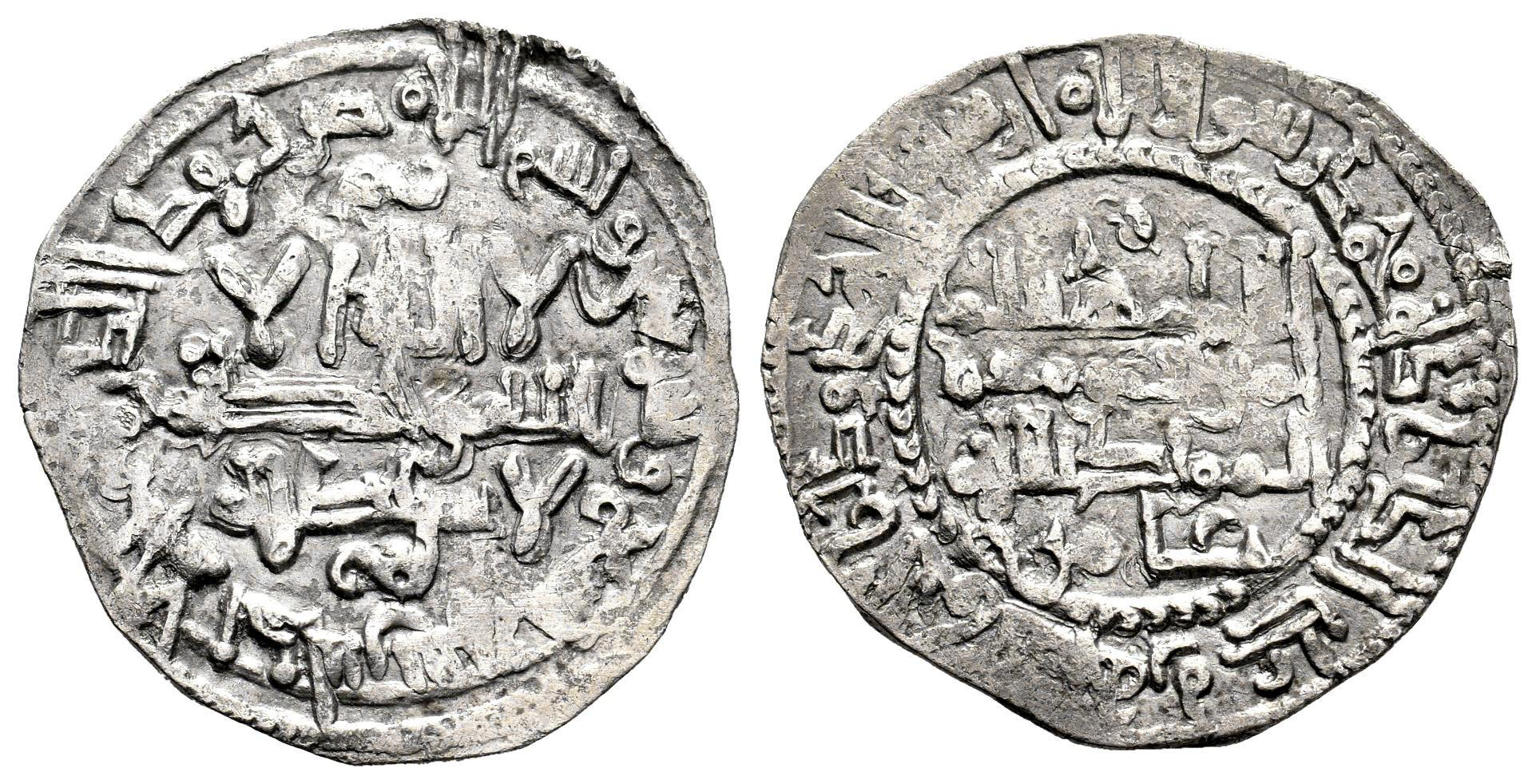Califato de Córdoba. Hisham II. Dirham. 399 H. Al-Andalus. (Vives-No cita). Ag. 2,33 g. Citando `Amir en IIA. Acuñada en el norte de África. Rara. MBC. Est...70,00.