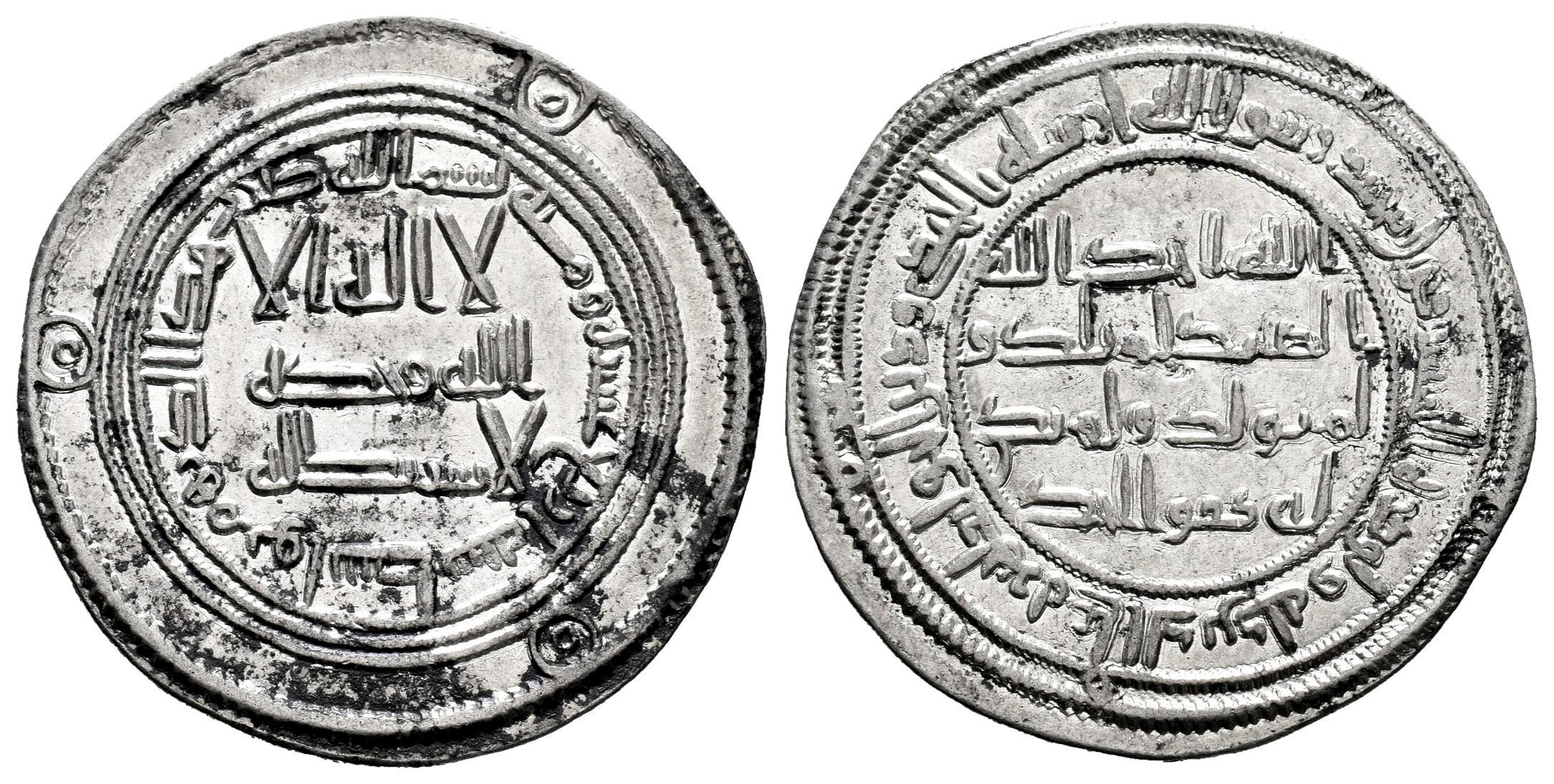 Califato Omeya. Hisham Ibn `Abd Al-Malik. Dirham. 114 H. Wasit. (Album-137). (SICA-II 1027). Ag. 2,89 g. Leves depósitos. EBC/EBC-. Est...50,00.