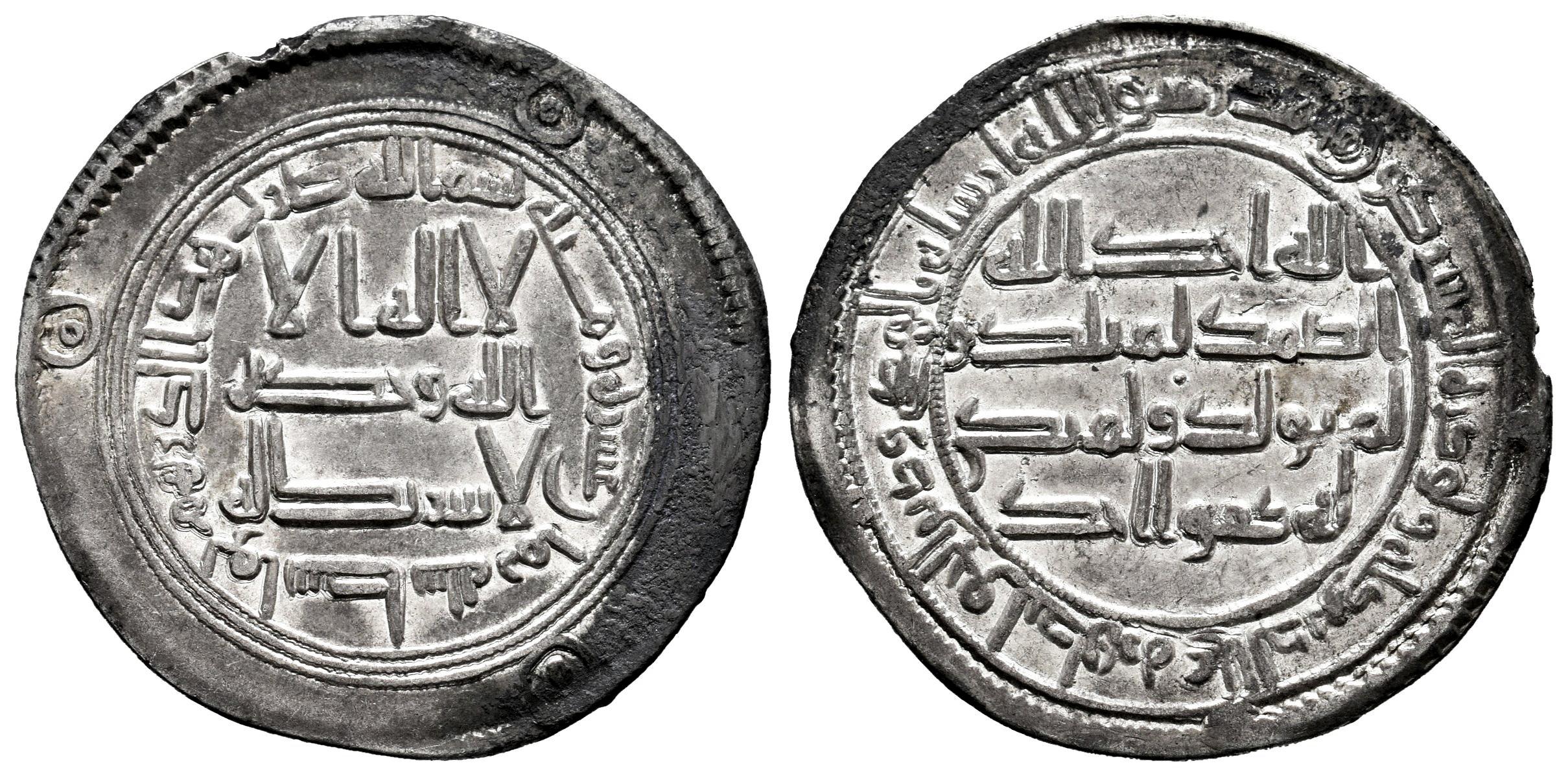 Califato Omeya. Hisham Ibn `Abd Al-Malik. Dirham. 118 H. Wasit. (Album-137). (Klat-711). Ag. 2,82 g. Restos de brillo original. Oxidaciones. EBC-. Est...50,00.