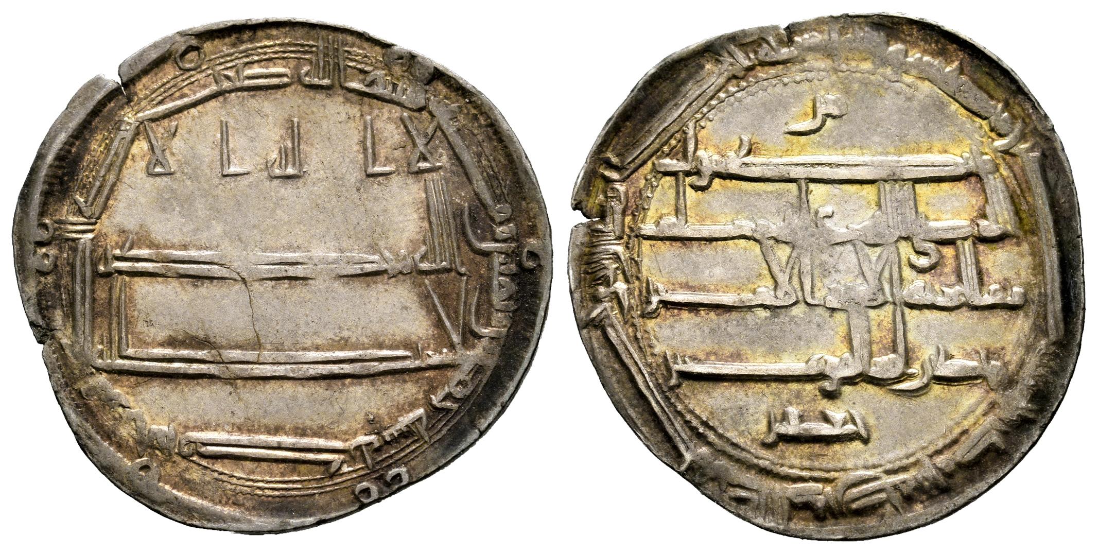 Califato Abásida. Harun al-Rashid. Dirham. 185 H. Al-Muhammadiya. (Album-219.9). Ag. 2,92 g. Citing a Ja`Far en IIA. Rara. Precioso tono iridiscente con reflejos dorados. EBC. Est...100,00.