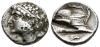 Acuñaciones Hispano-Cartaginesas. Siclo - Shekel. 235-220 a.C. Incierta. (Abh-482). (MIB-8/34). (Acip-543). Anv.: Cabeza masculina con diadema a izquierda. Rev.: Proa de nave con un escudo, debajo delfín a derecha. Ag. 7,46 g. Oxidaciones en anverso. Corte de prueba en reverso. Rara. MBC-/MBC+. Est...900,00.