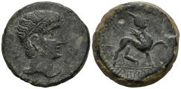 Kastilo-Castulo. As. 180 a.C. Cazlona (Jaén). (Abh-700). Anv.: Cabeza masculina diademada a derecha, delante mano. Rev.: Esfinge a derecha, leyenda KASTILO a derecha, debajo de línea. Ae. 16,51 g. MBC+/MBC-. Est...60,00.