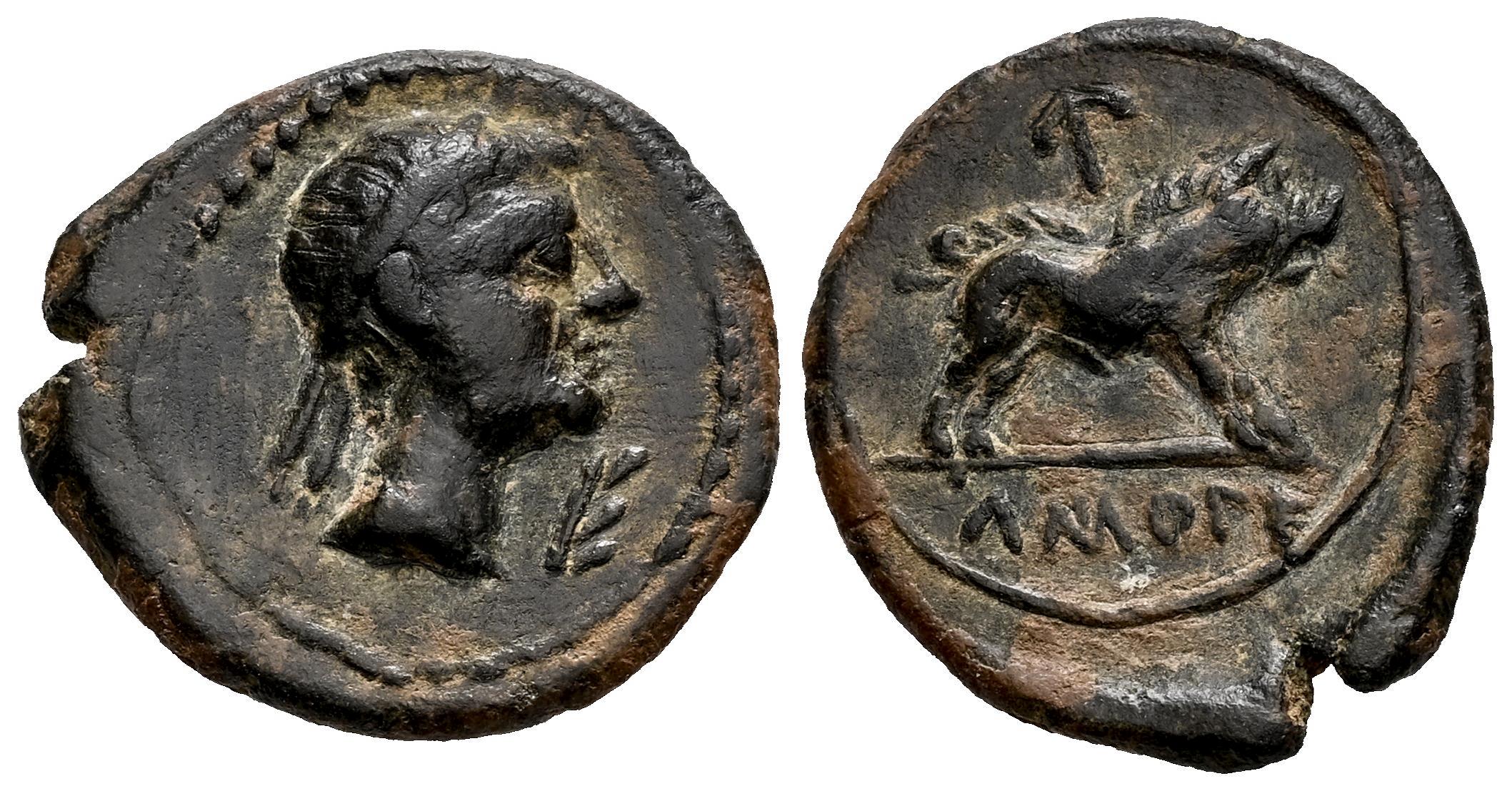 Kastilo-Castulo. Cuadrante. 180 a.C. Cazlona (Jaén). (Abh-739). (Acip-2154). (C-50). Anv.: Cabeza masculina diademada a derecha, delante letra ibérica. Rev.: Jabalí a derecha, encima letra ibérica U, debajo de línea leyenda ibérica KASTILO. Ae. 3,00 g. Escasa. MBC+. Est...90,00.