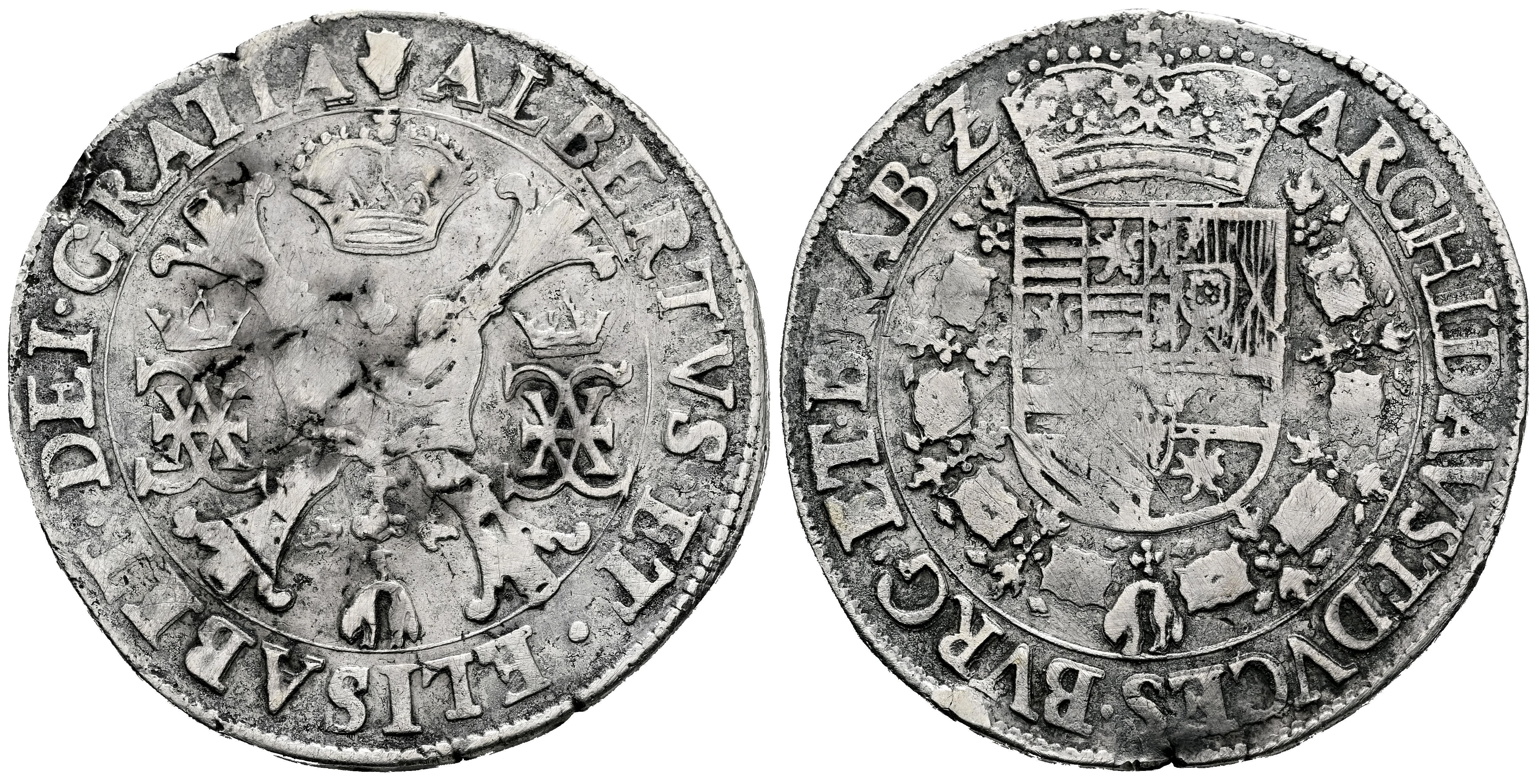 Alberto e Isabel (1598-1621). 1 patagón. ND. Amberes. (Tauler-1698). (Vti-346). (Vanhoudt-1619.AN). Ag. 27,42 g. MBC. Est...150,00.