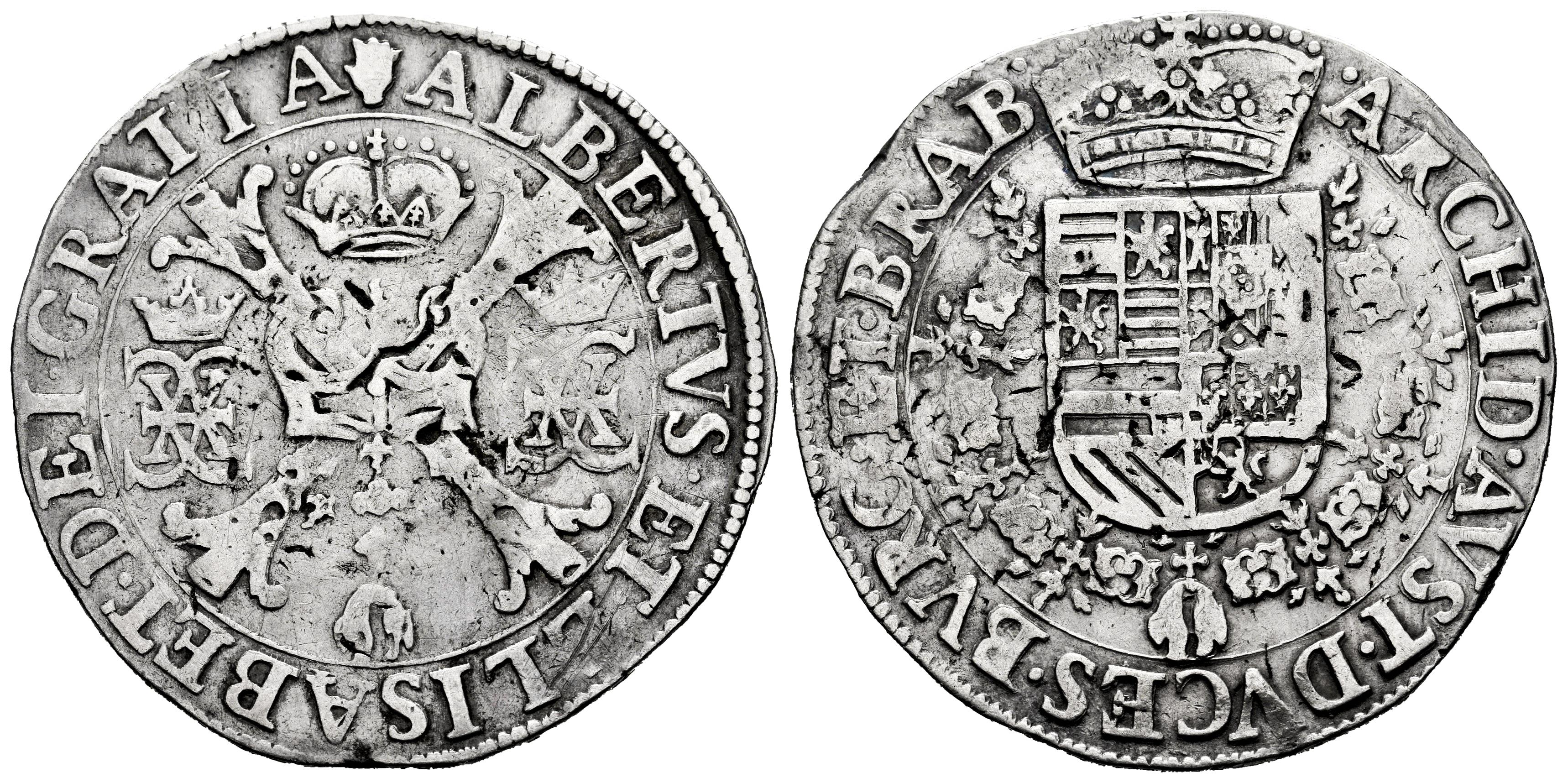 Alberto e Isabel (1598-1621). 1 patagón. ND. Amberes. (Tauler-1698). (Vti-346). (Vanhoudt-619.AN). Ag. 27,61 g. MBC. Est...180,00.