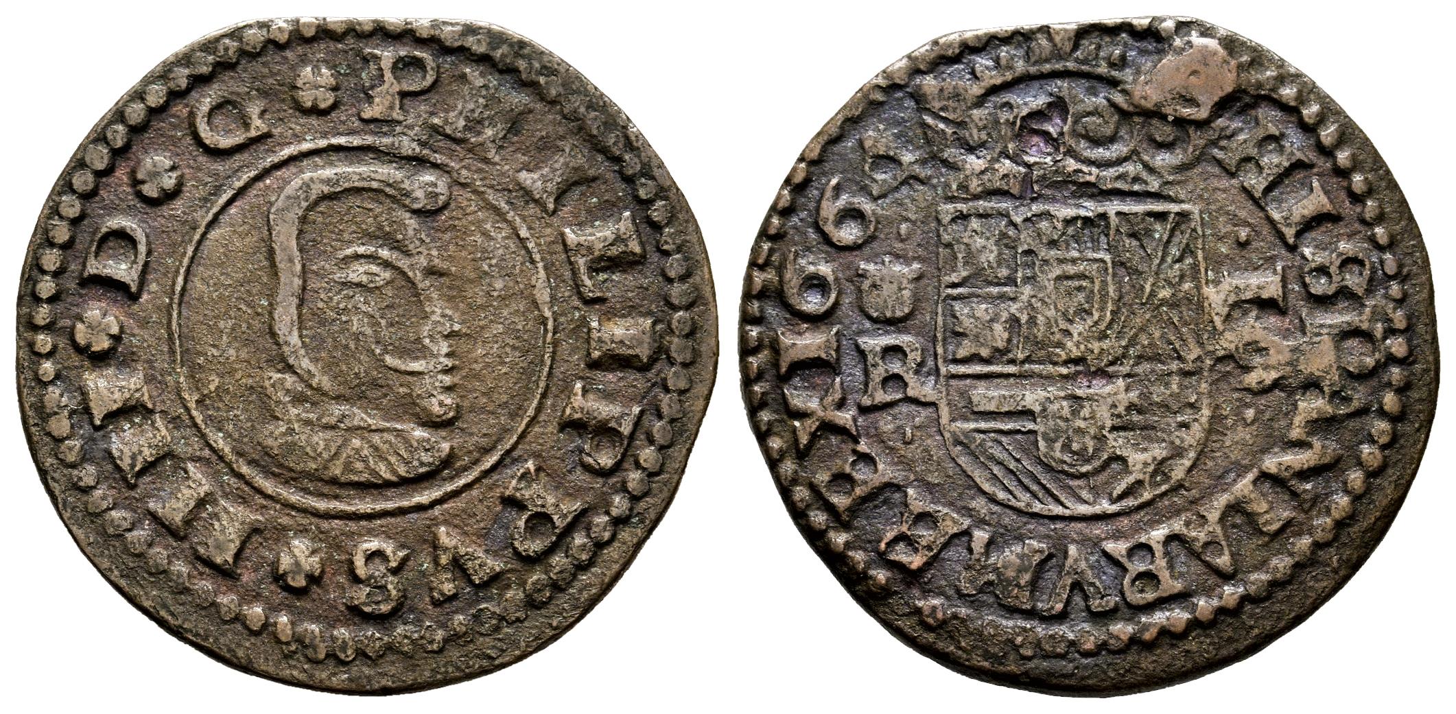 Felipe IV (1621-1665). 16 maravedís. 1664. Coruña. R. (Cal-455). (Jarabo-Sanahuja-M138). Ae. 4,77 g. Venera a izquierda. Escasa. MBC-. Est...35,00.