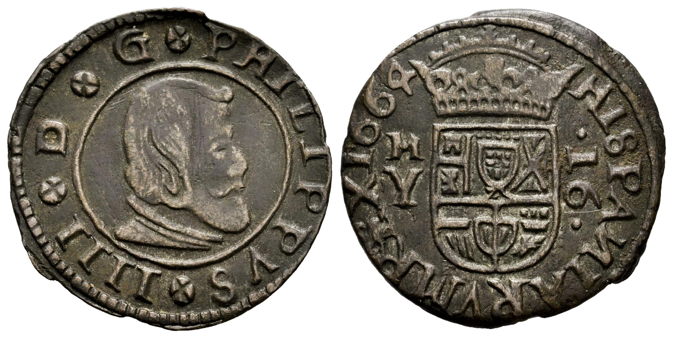 Felipe IV (1621-1665). 16 maravedís. 1664. Madrid. Y. (Cal-481). (Jarabo-Sanahuja-M414). Ae. 3,65 g. MBC+. Est...30,00.