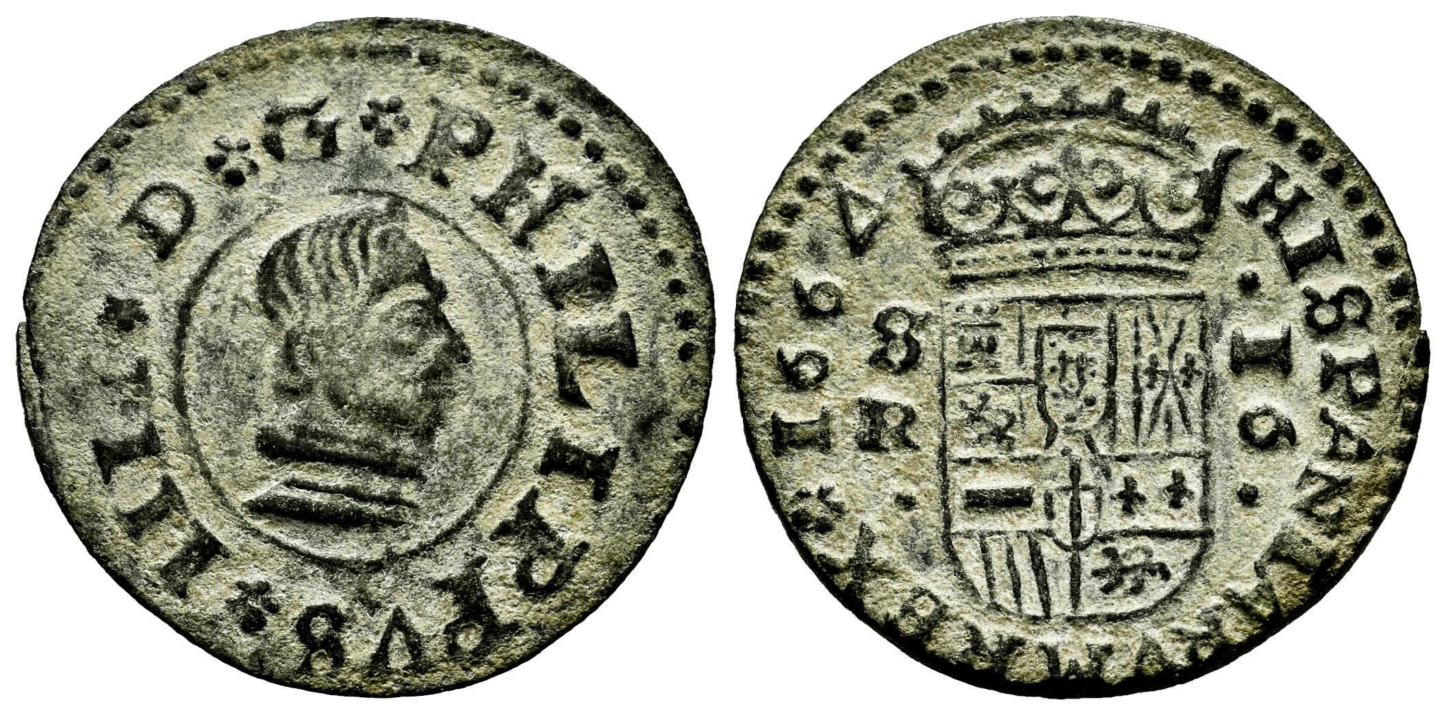 Felipe IV (1621-1665). 16 maravedís. 1664. Sevilla. R. (Cal-498). (Jarabo-Sanahuja-M616). Ae. 3,91 g. MBC+. Est...35,00.