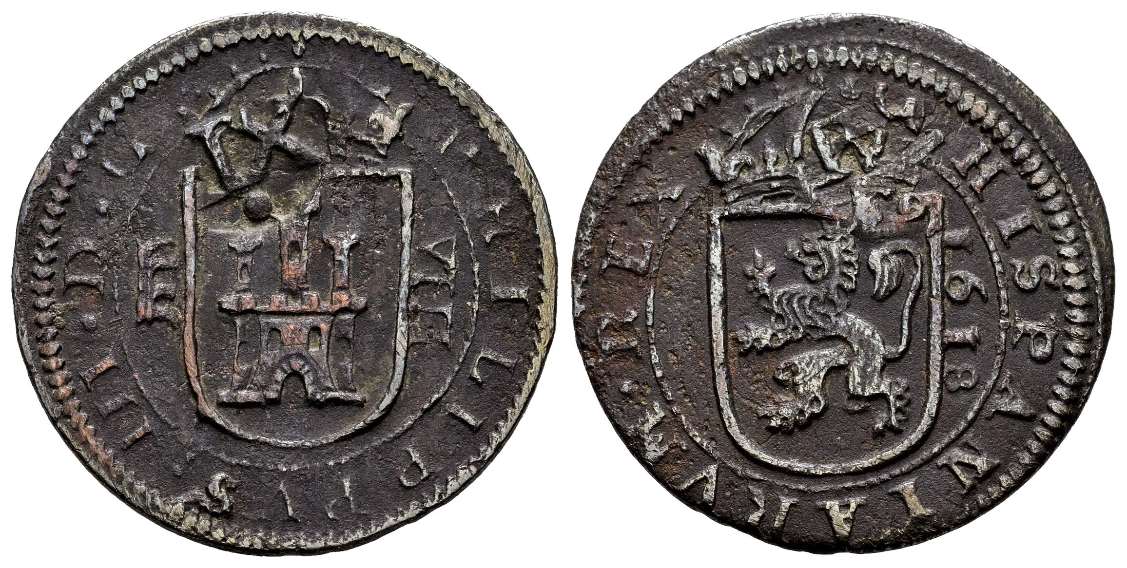 Felipe IV (1621-1665). 12 maravedís. (Cal-514). Ae. 5,57 g. Resellada sobre 8 maravedís 1618 Segovia. MBC-. Est...15,00.