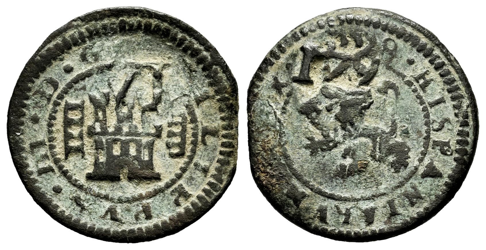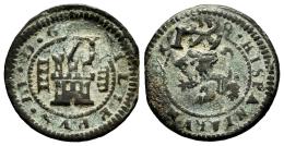 Felipe IV (1621-1665). 6 maravedís. 1641. Valladolid. (Cal-515). (Jarabo-Sanahuja-H53). Ae. 2,79 g. Resellada sobre 4 maravedís Segovia 1618. Escasa. MBC-. Est...25,00.