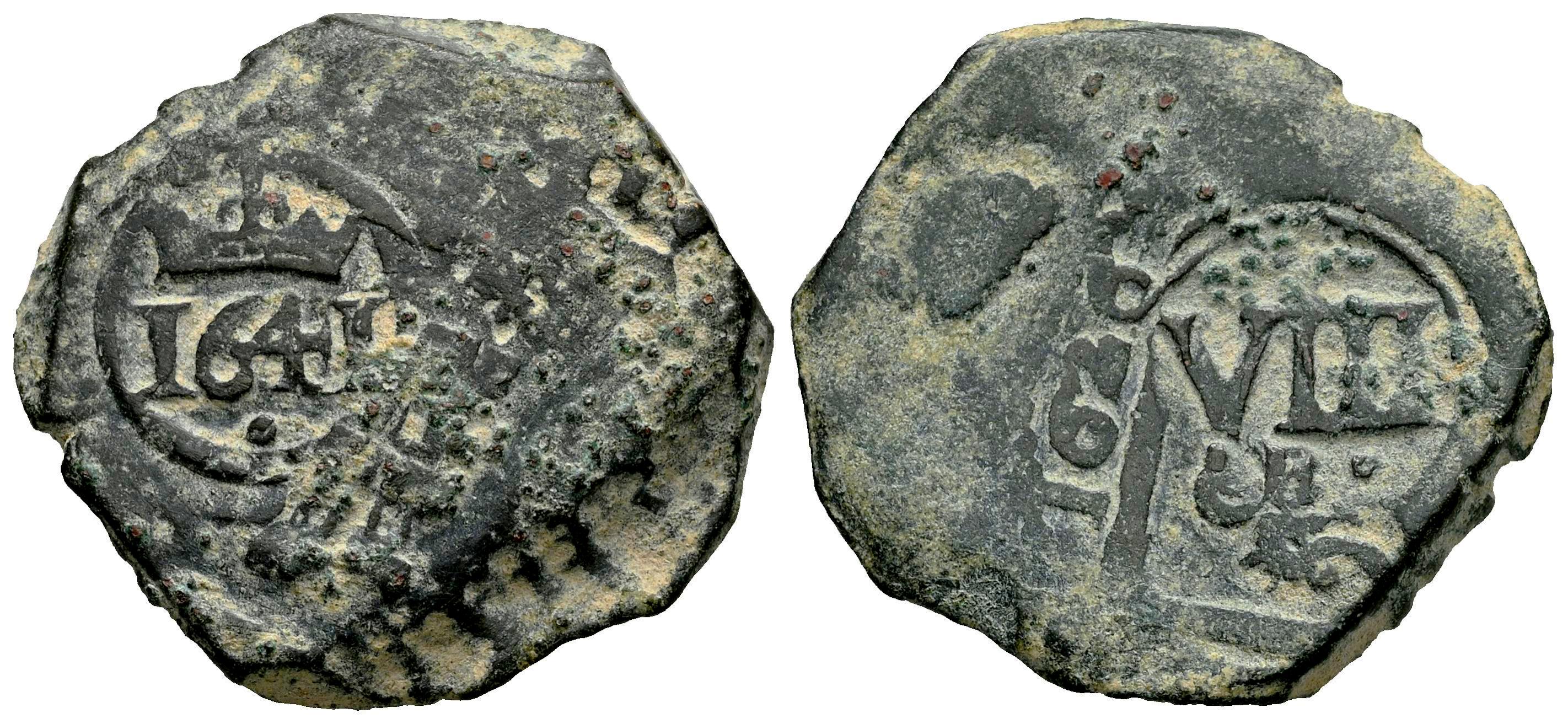 Felipe IV (1621-1665). 8 maravedís. 1641. Burgos. (Cal-516). Ae. 7,69 g. Resellada sobre 8 maravedís de 1626. BC/MBC+. Est...30,00.