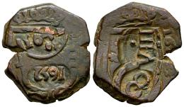 Felipe IV (1621-1665). 8 maravedís. 1652. (Cal-519). Ae. 6,84 g. Doble resello de fecha (1641 y 1652) y de valor (8 y VIII). MBC/MBC+. Est...25,00.