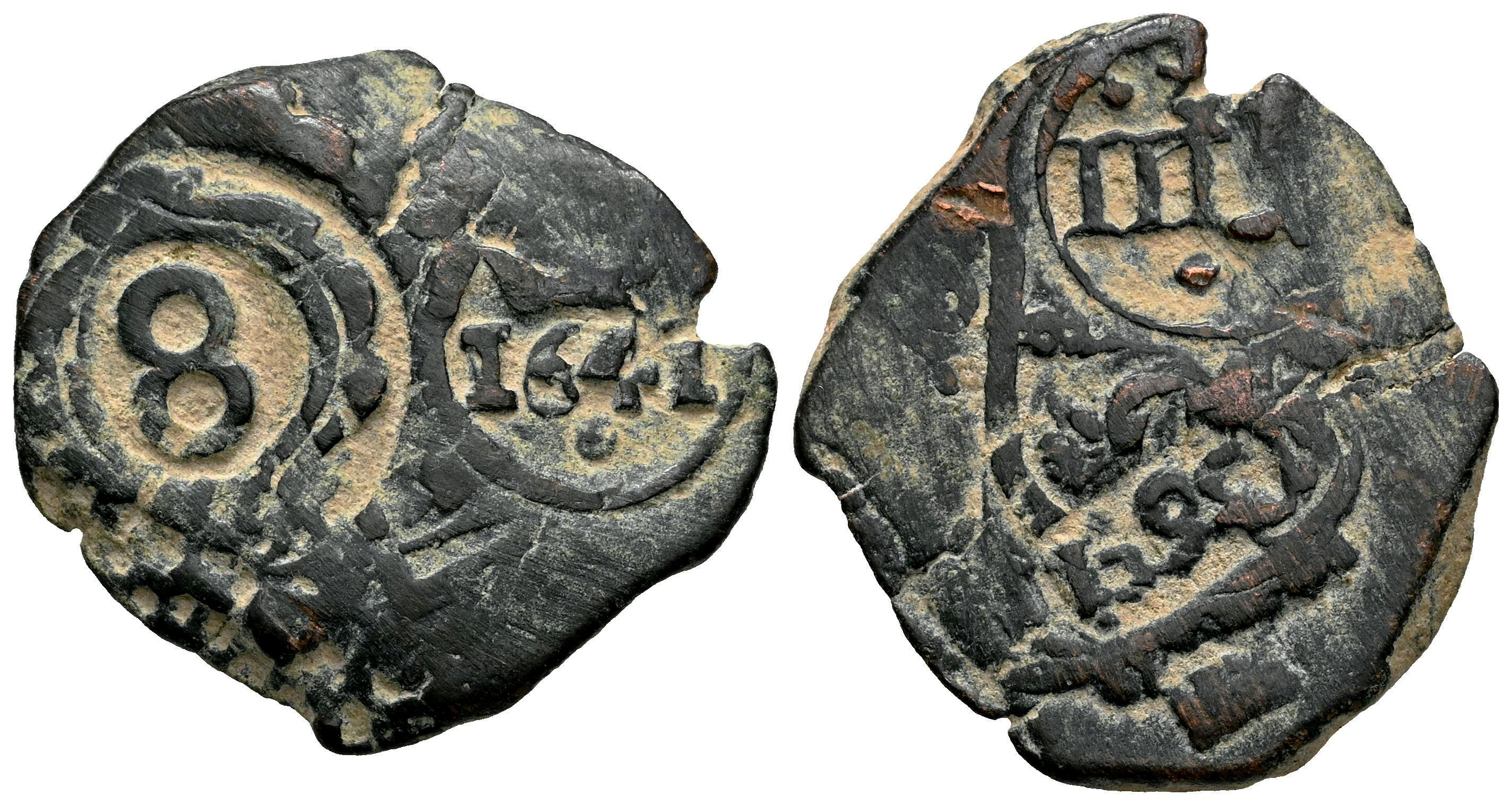 Felipe IV (1621-1665). 8 maravedís. 1652. (Cal-519). Ae. 6,37 g. Doble resello de fecha (1641 y 1652) y de valor (8 y VIII). MBC/MBC+. Est...25,00.
