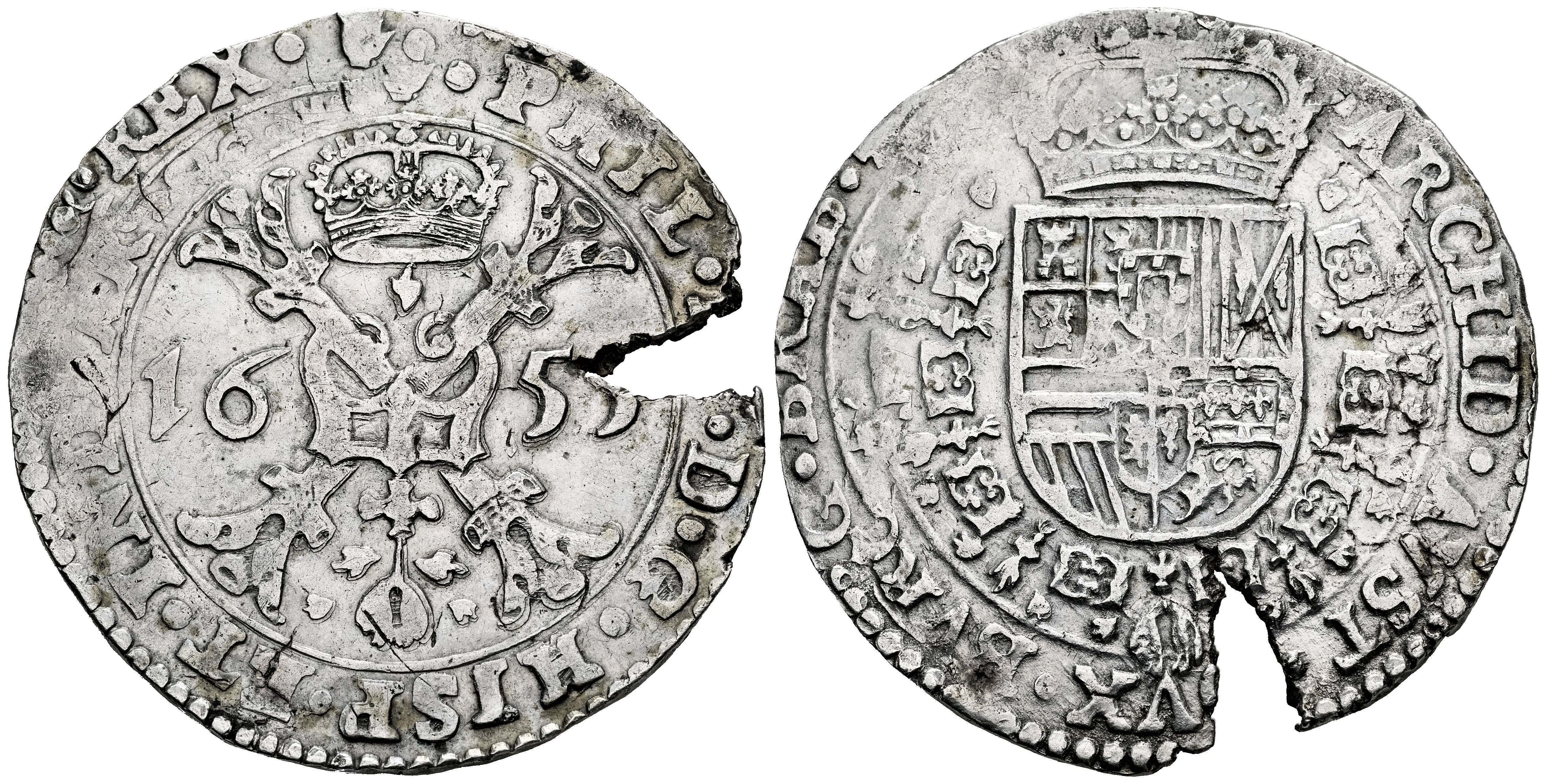 Felipe IV (1621-1665). 1 patagón. 1655. Amberes. (Tauler-2588). (Vti-958). (Vanhoudt-645.AN). Ag. 27,72 g. Grieta de acuñación. MBC+. Est...200,00.